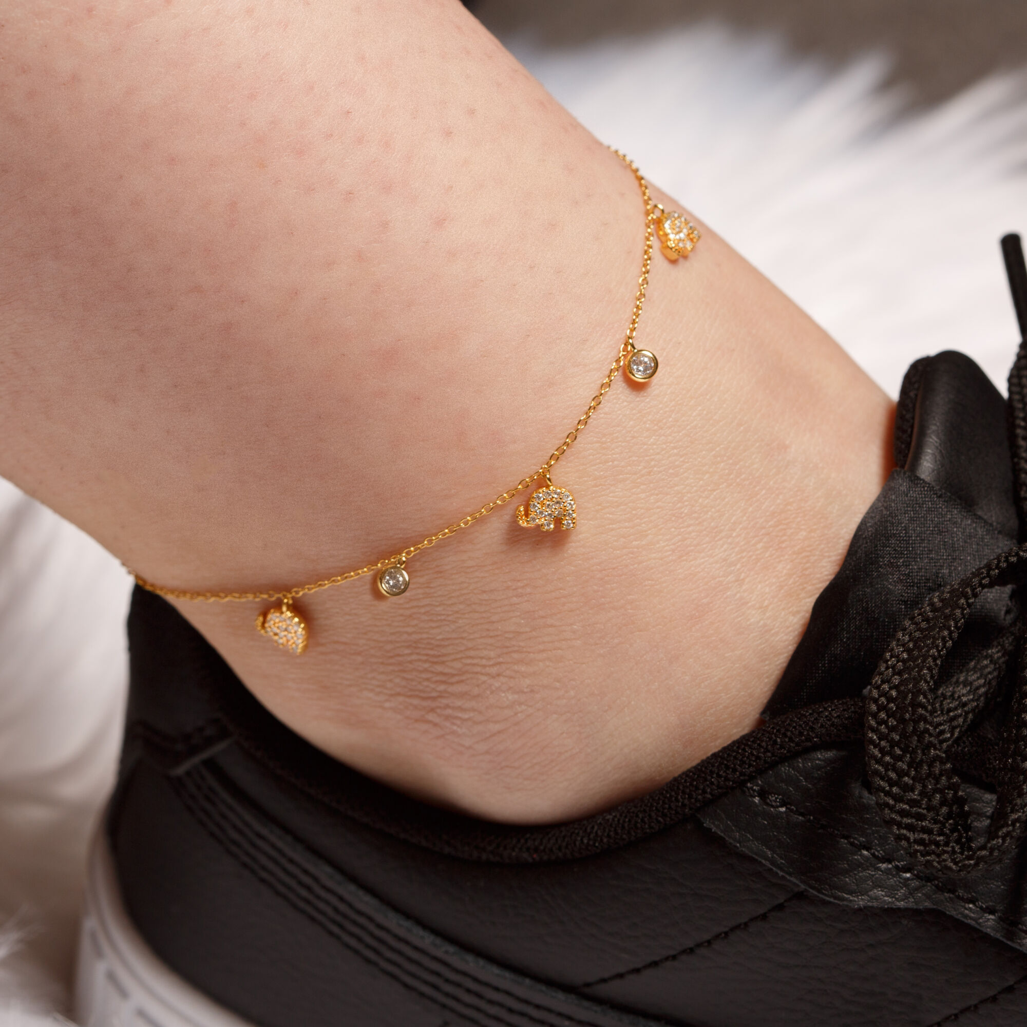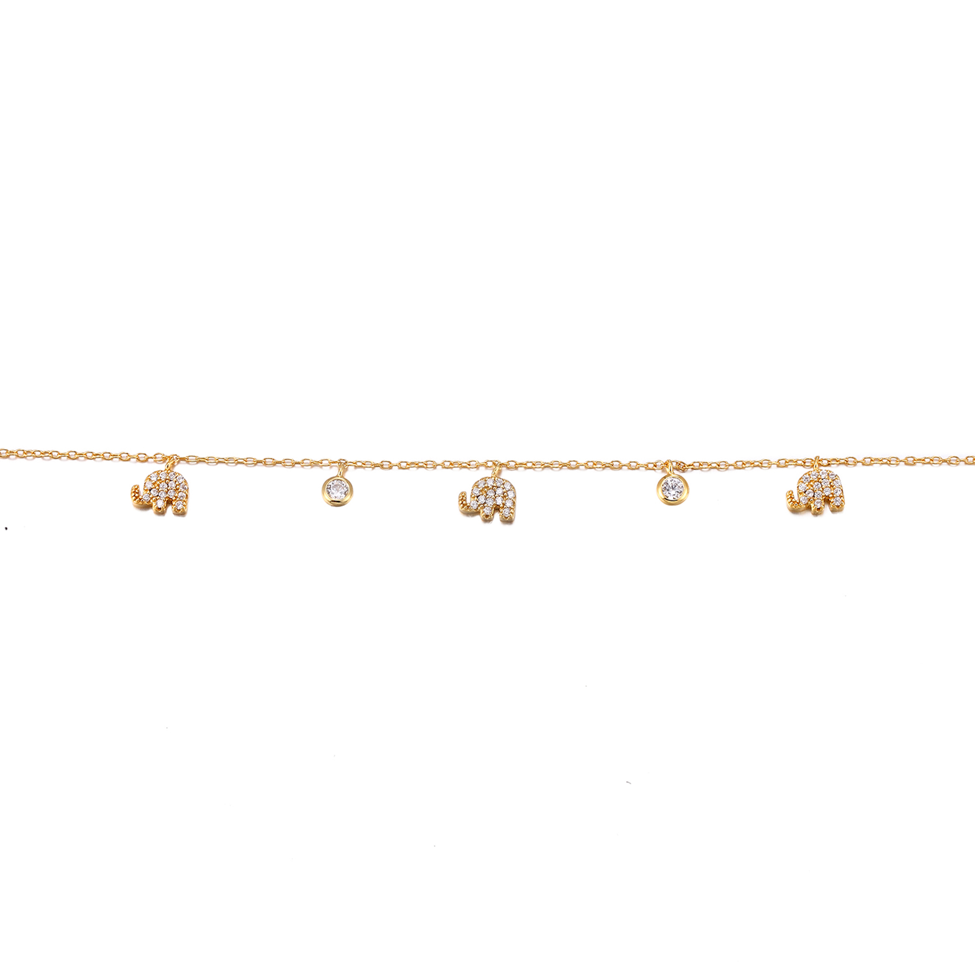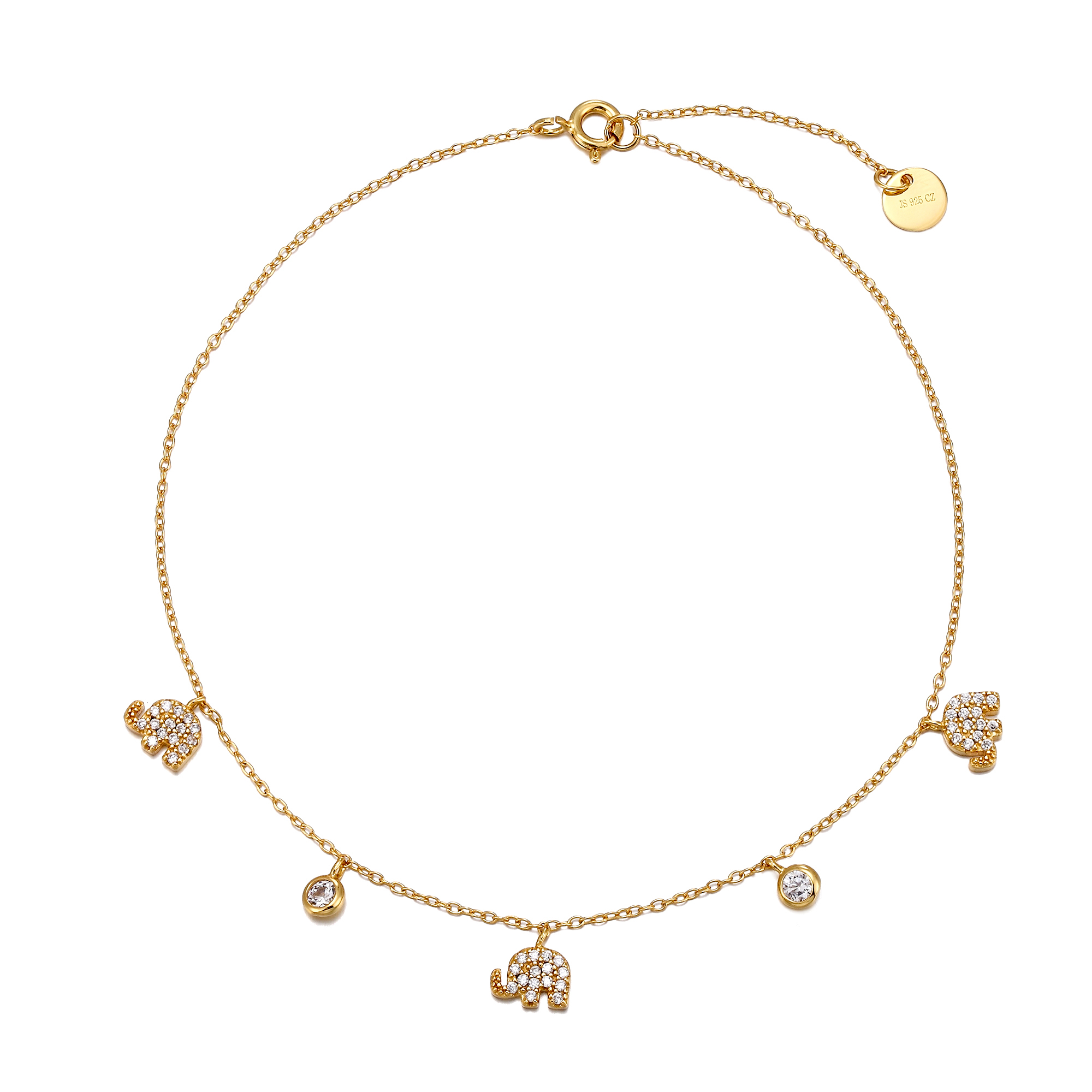 Elevate your everyday style with our 18ct gold plated CZ elephant charm anklet. Designed to capture the light with every step, this piece blends timeless symbolism with contemporary sparkle.