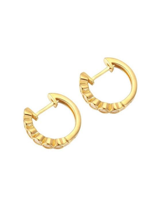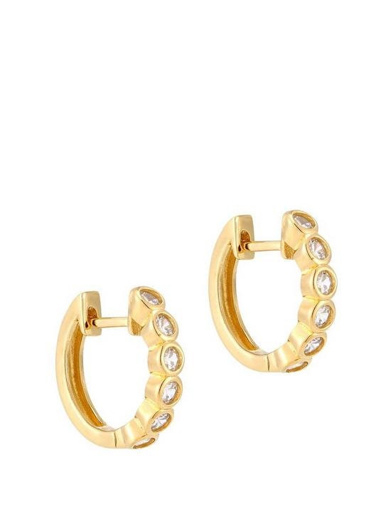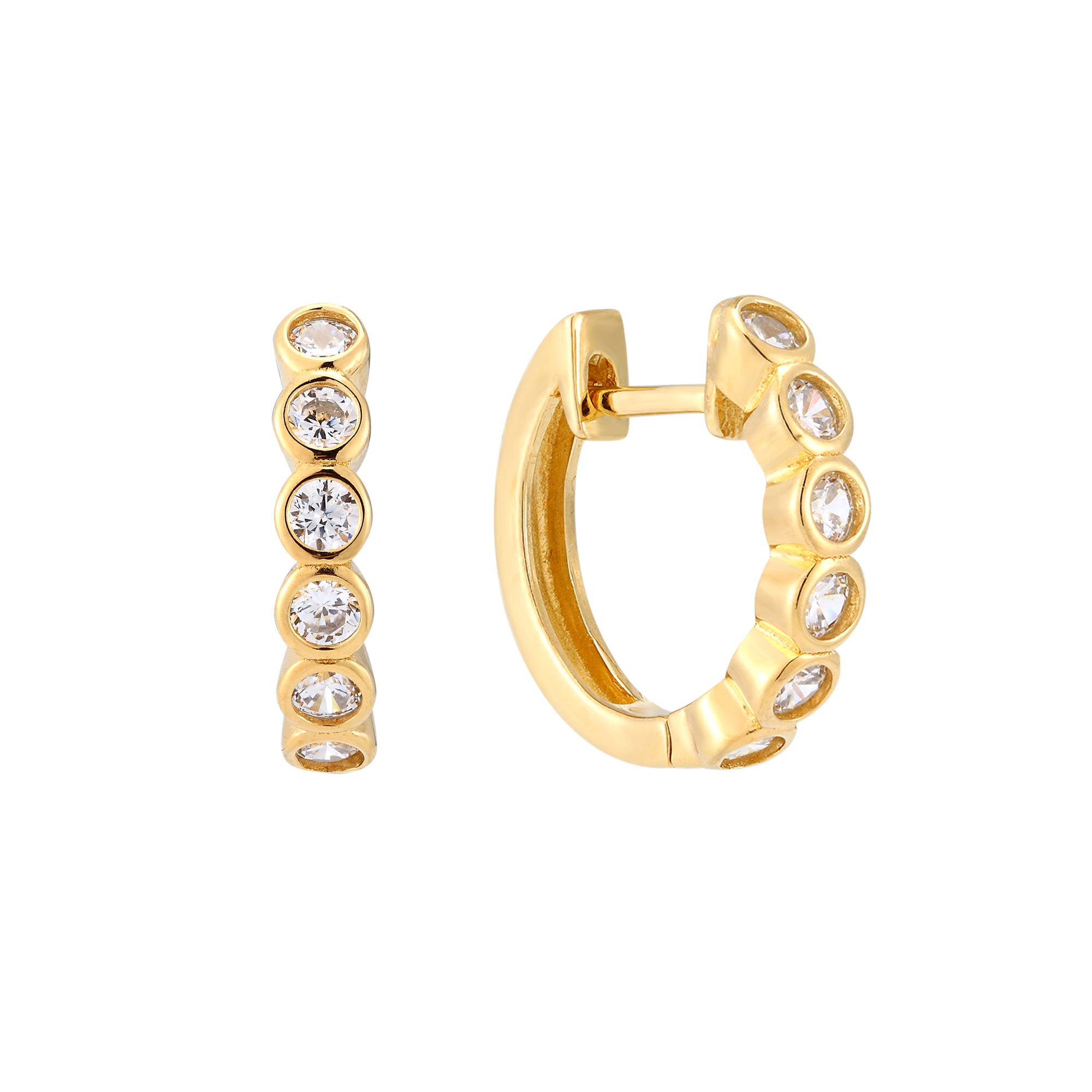 As seen all over Instagram these huggie earrings are everywhere at the moment. Made from sterling silver and finished with 18ct gold plate, these earrings are bezel set half way round with a smart polished finish on the reverse. They come in a smart presentation box making them perfect for gifting.