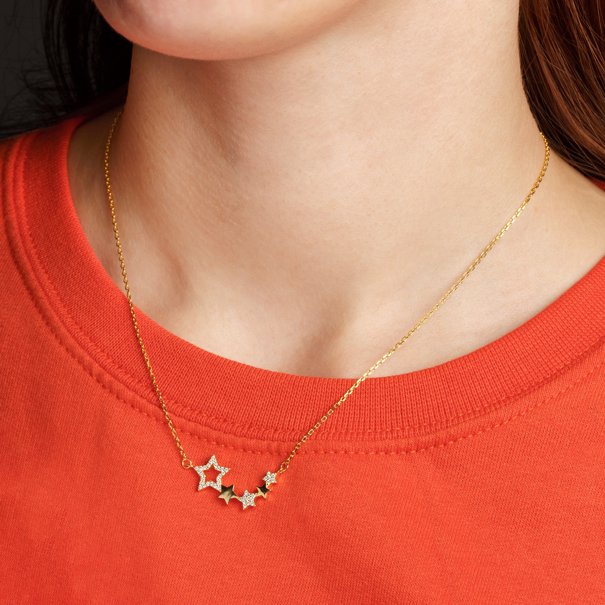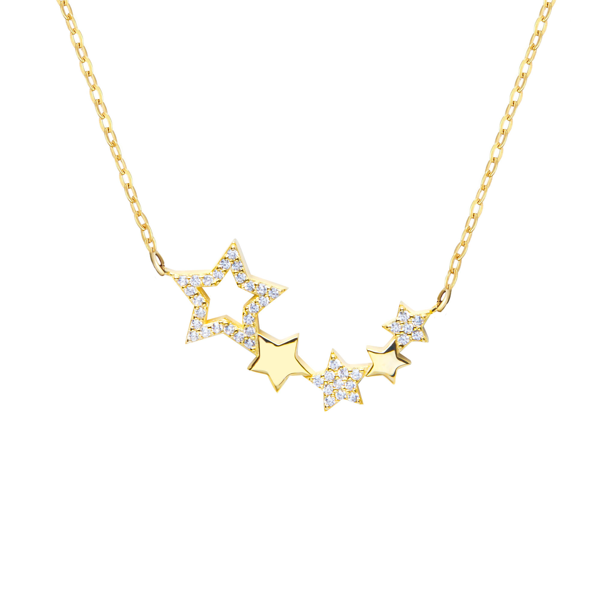 This beautiful constellation star necklace is made from sterling silver before being plated in 18ct gold and is set with sparking cubic zirconia stones. The chain itself is a delicate trace chain and has been made with an extension chain added to the end, to ensure that the necklace will fit almost every person which makes this item ideal for gifting if you are not totally sure of someone’s size. The necklace comes presented in a lovely gift box.