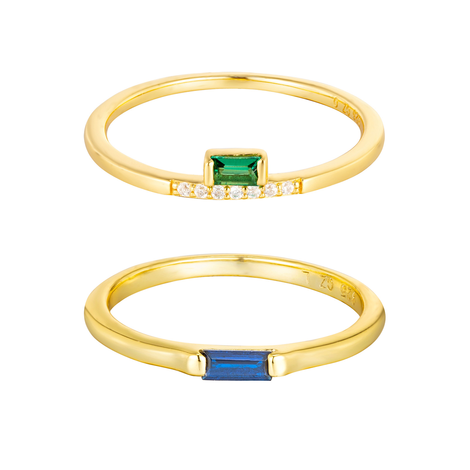 Introducing our 18ct Gold Plated Sterling Silver Dainty Baguette Emerald Ring Stacking Set, a collection of exquisite rings designed to add a touch of elegance and a pop of colour to your ensemble. Meticulously crafted, this set features two dainty rings, each adorned with a baguette-cut emerald, all plated in 18ct gold. The rich green hue of the emeralds adds an element of sophistication. Wear them individually for a subtle touch of luxury or stack them for a bolder statement. Elevate your style with this versatile and captivating ring set.