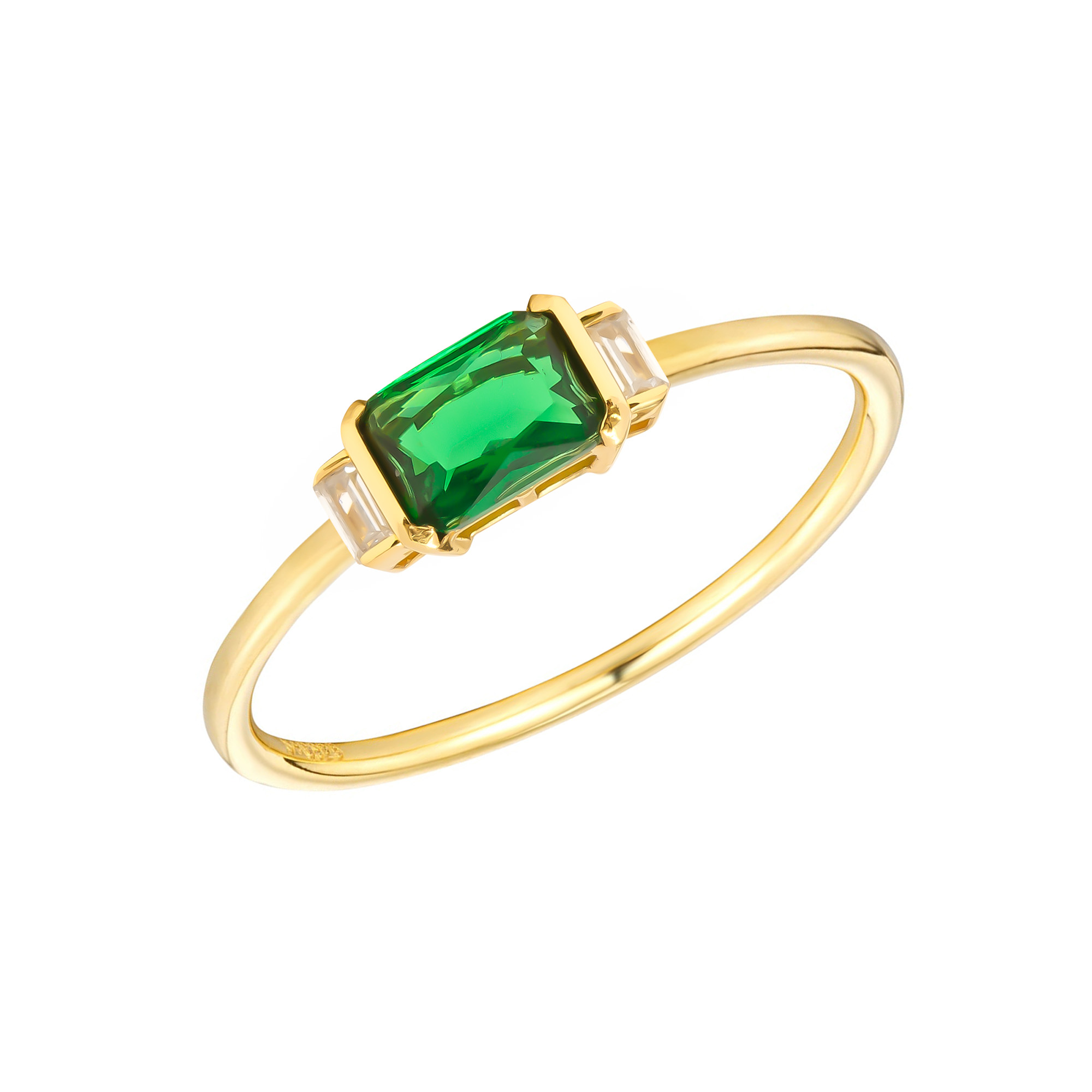 18ct Gold Plated Sterling Silver Emerald Baguette Triple CZ Engagement Ring
