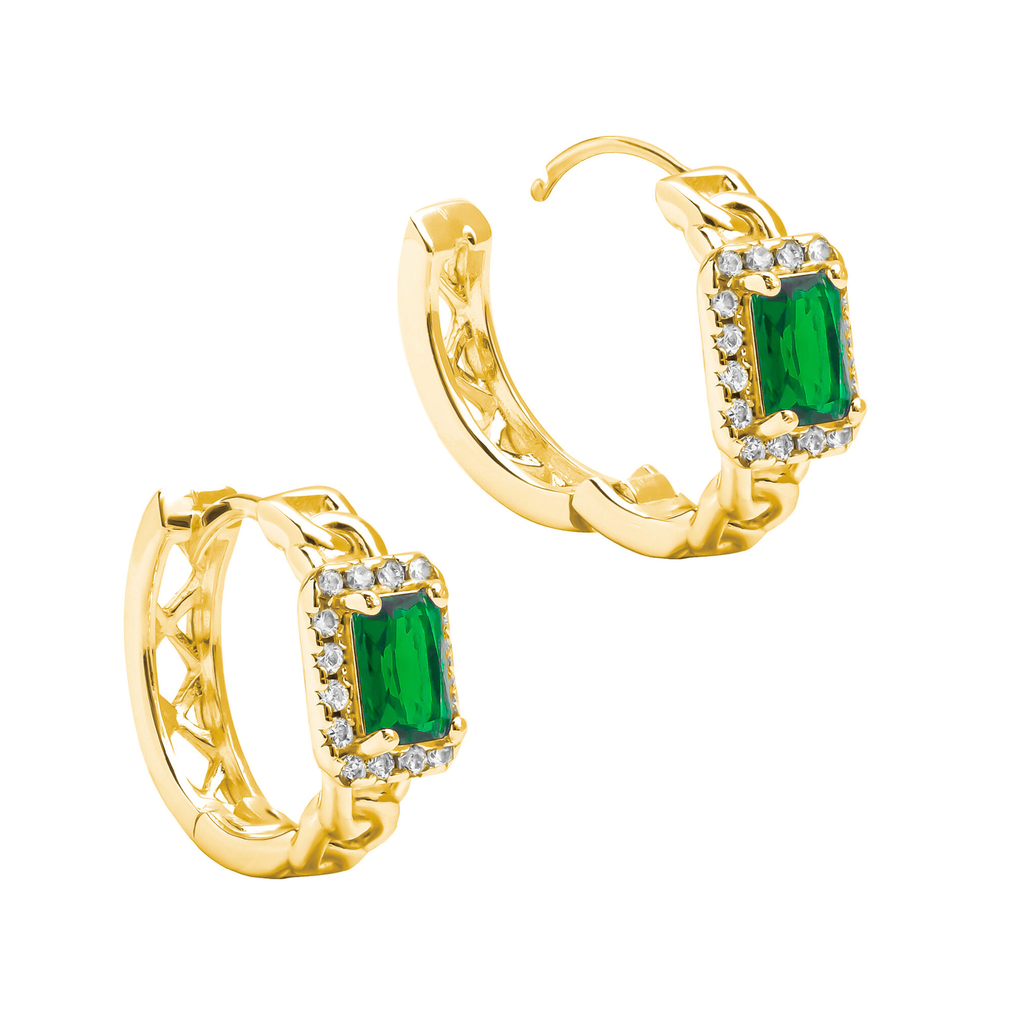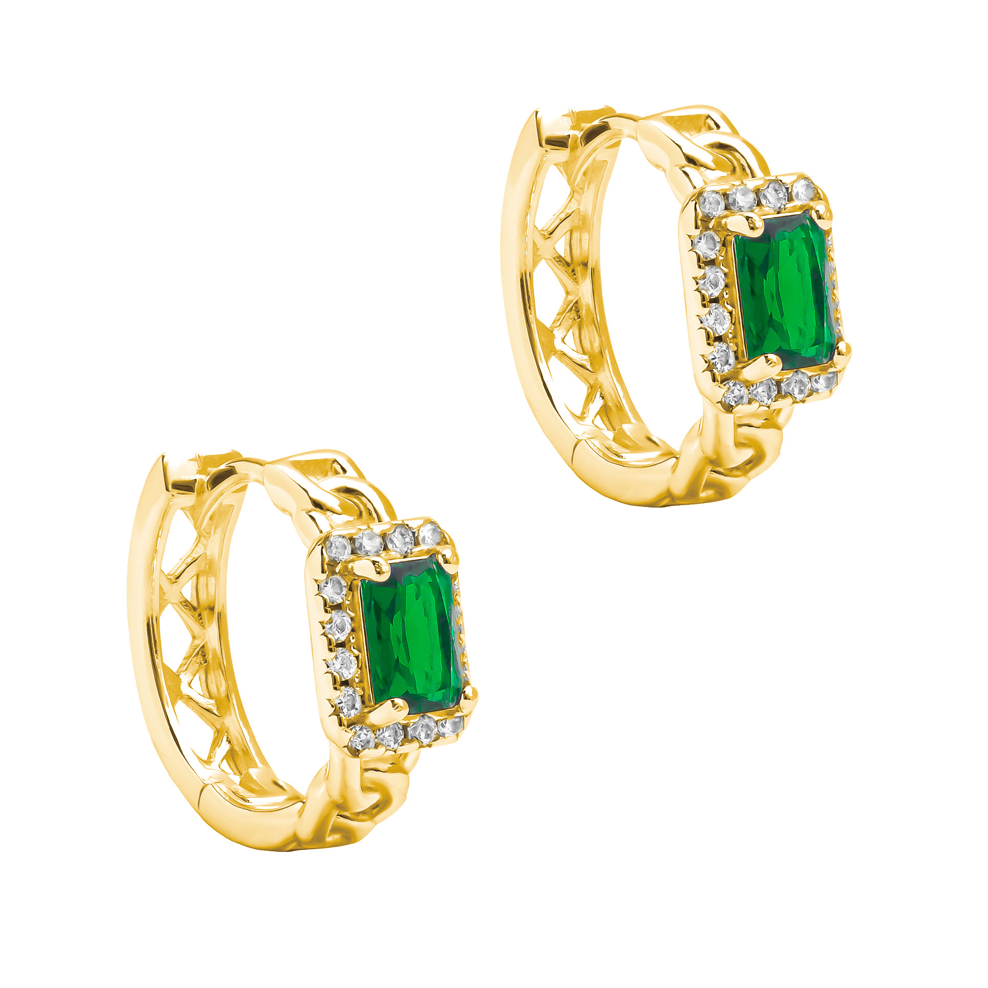 18ct Gold Plated Sterling Silver Emerald Green CZ Chain Huggies