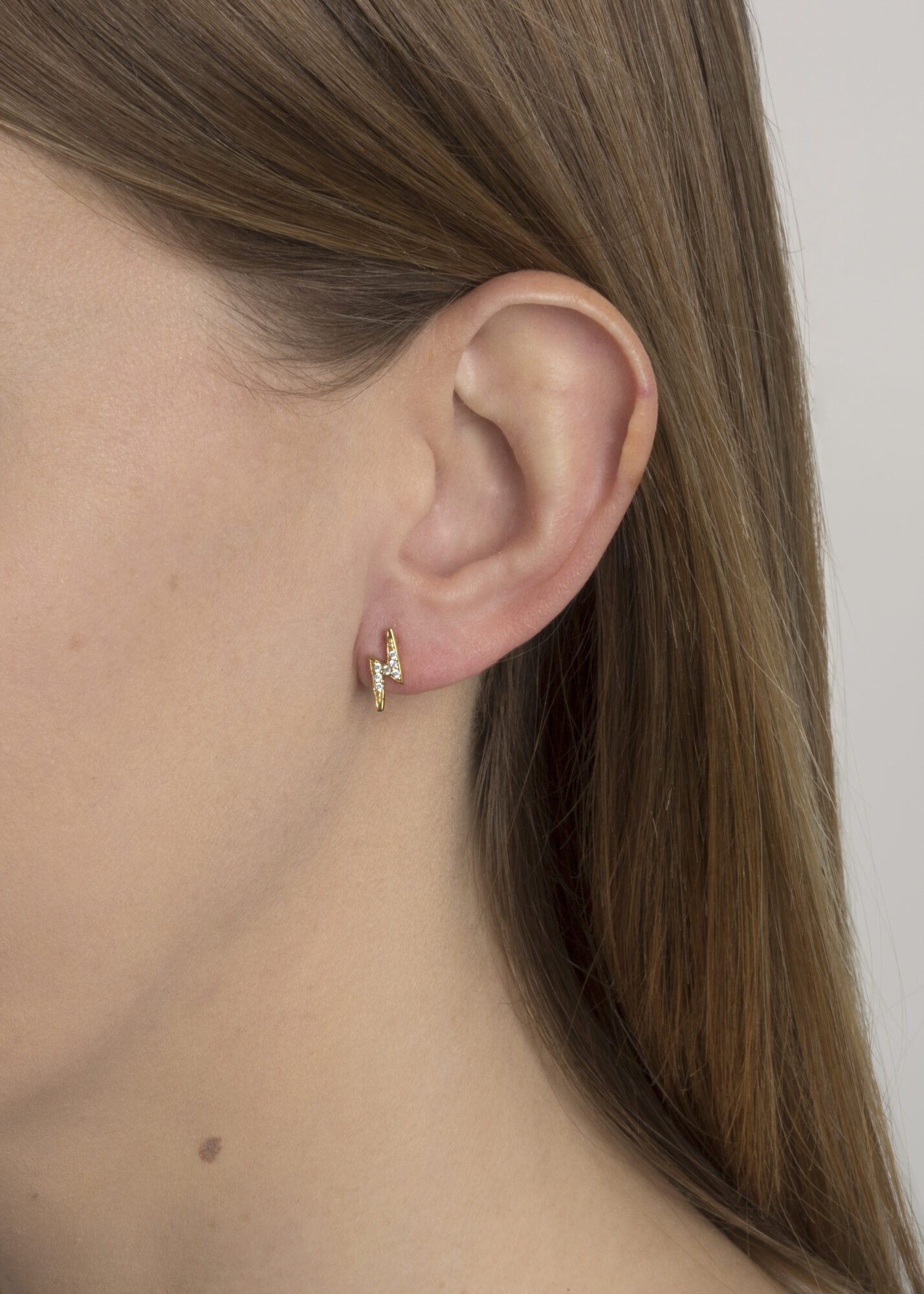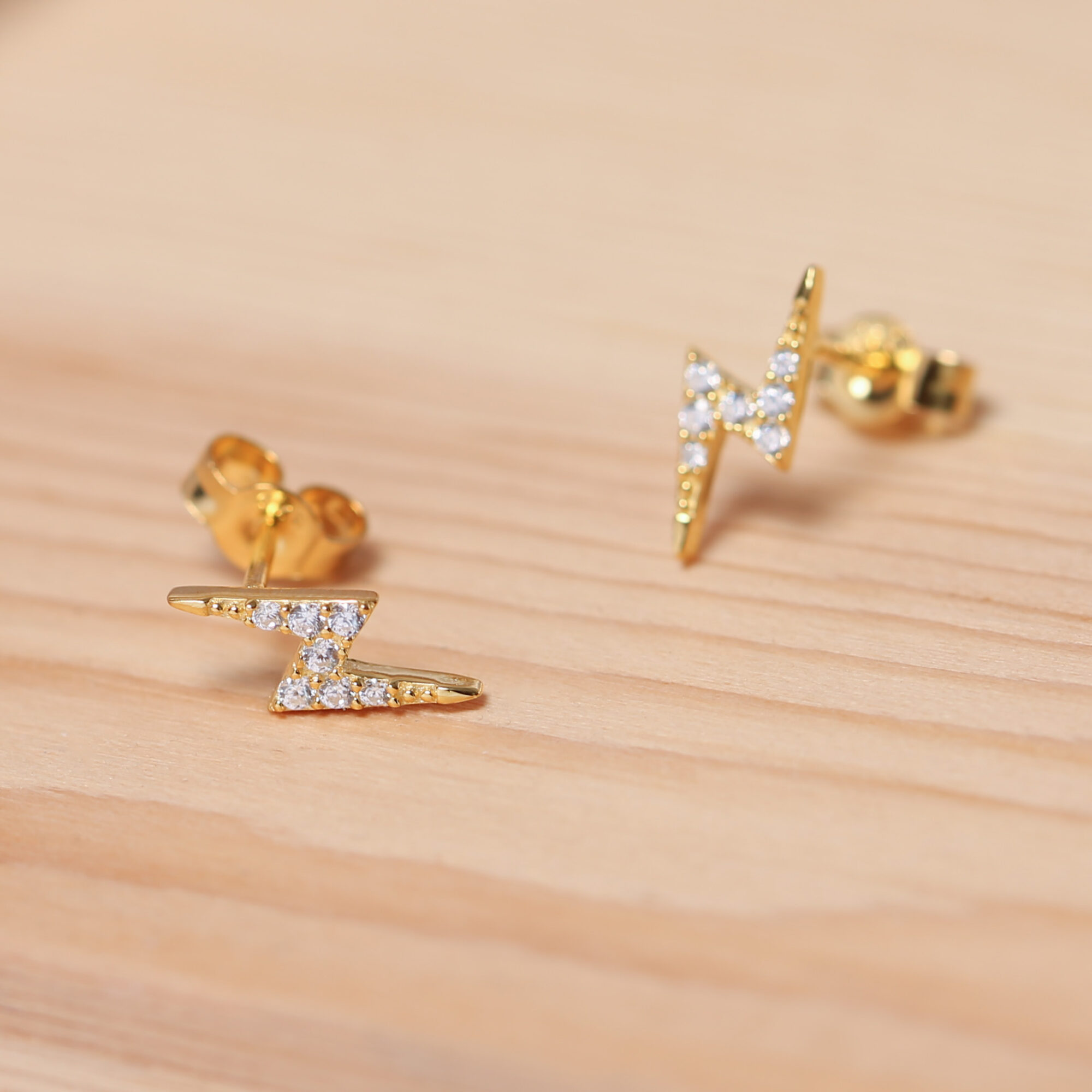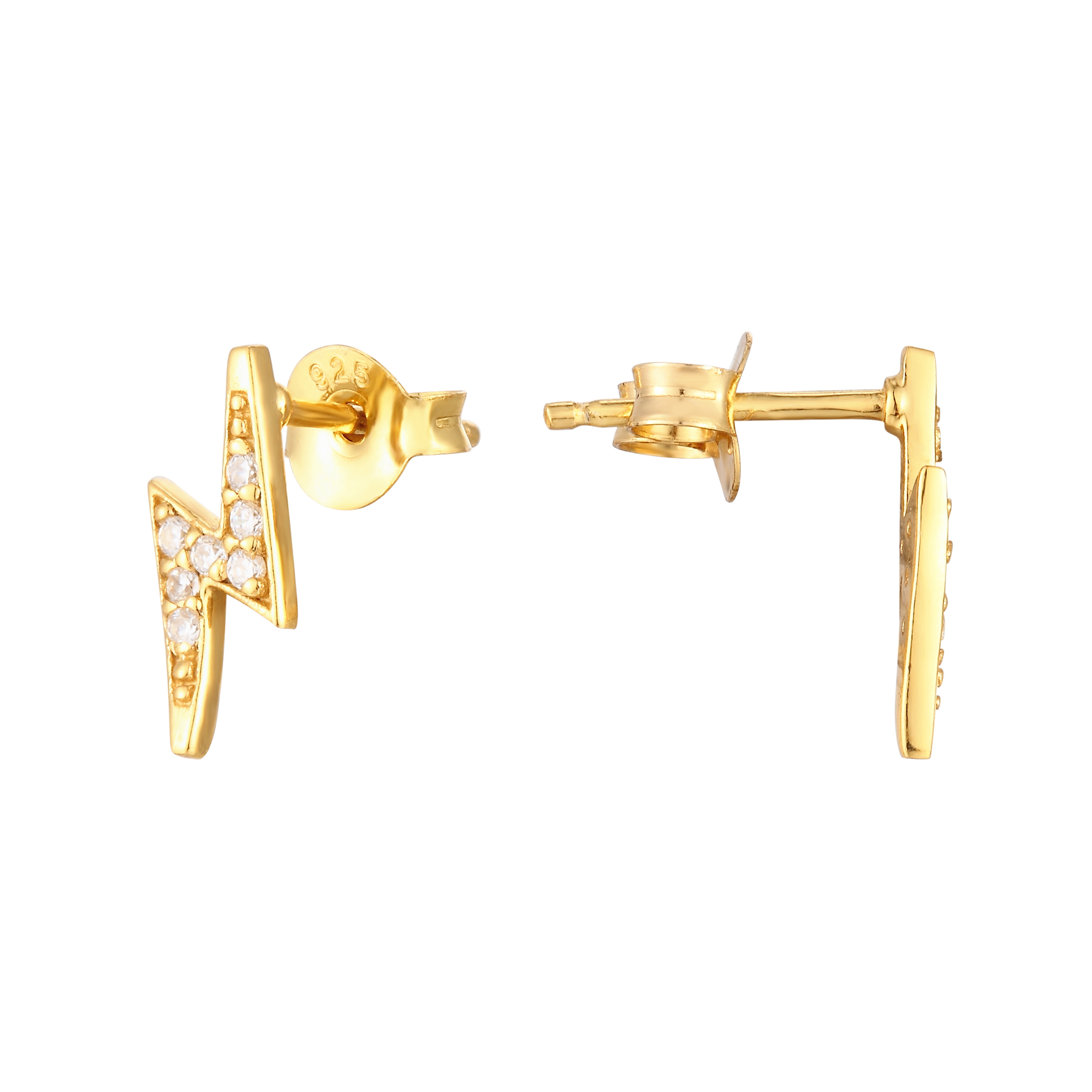 - 18ct Gold Plated Lightning Bolt Earrings: Stylish stud earrings crafted in sterling silver and plated with 18ct gold, featuring a lightning bolt design adorned with sparkling cubic zirconia stones.