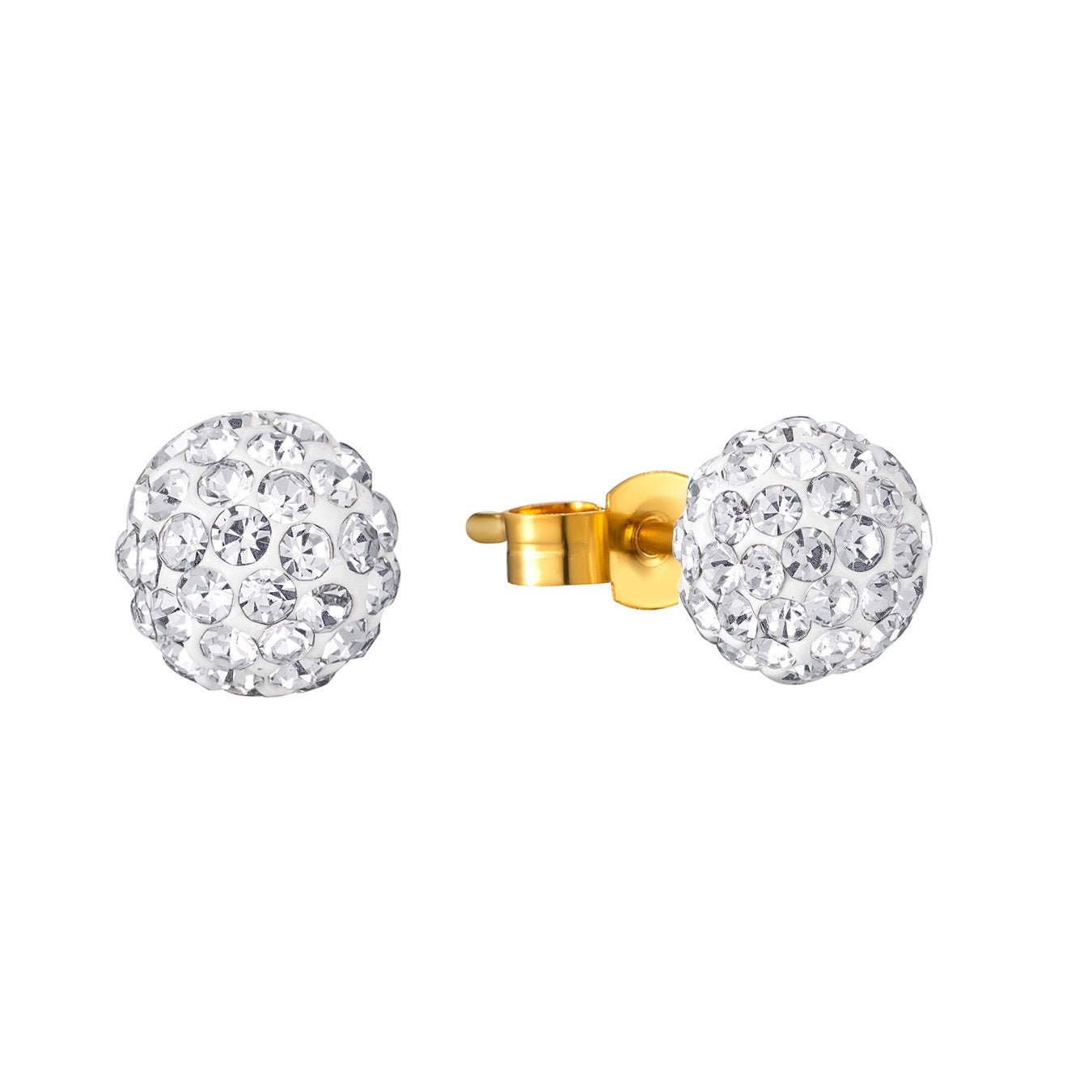 Made from sterling silver, these 18ct gold plated white glitterball stud earrings are the perfect everyday accessory. Ideal to wear alone or can be stacked in multiple piercings. All of our earrings come in a beautiful presentation box, making them the perfect gift for those special people in your life. Avaliable in two sizes: 6mm and 8mm.Please note that if you are ordering more than one item that they will arrive in only one gift box. If you need more than one gift box then please message us and let us know!
