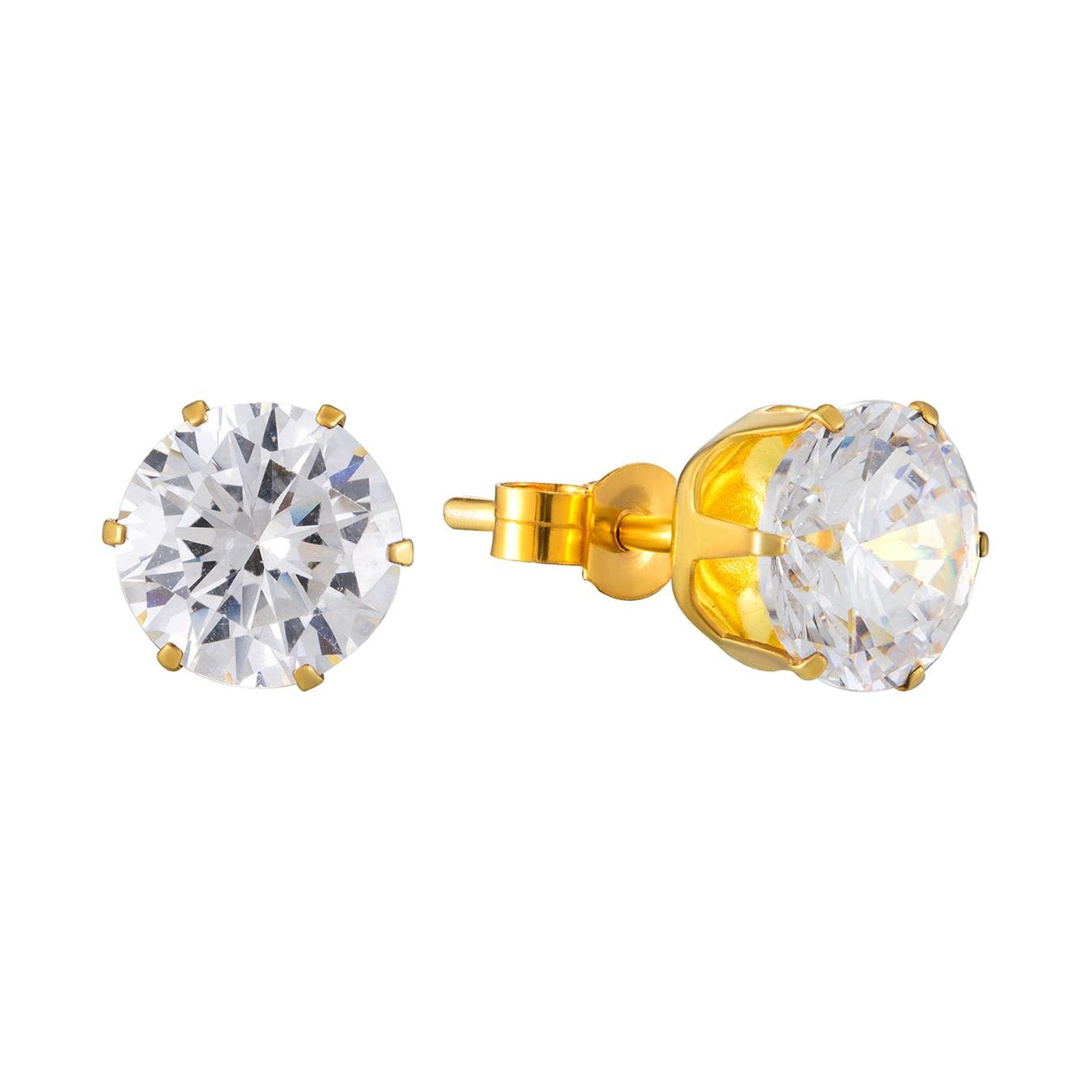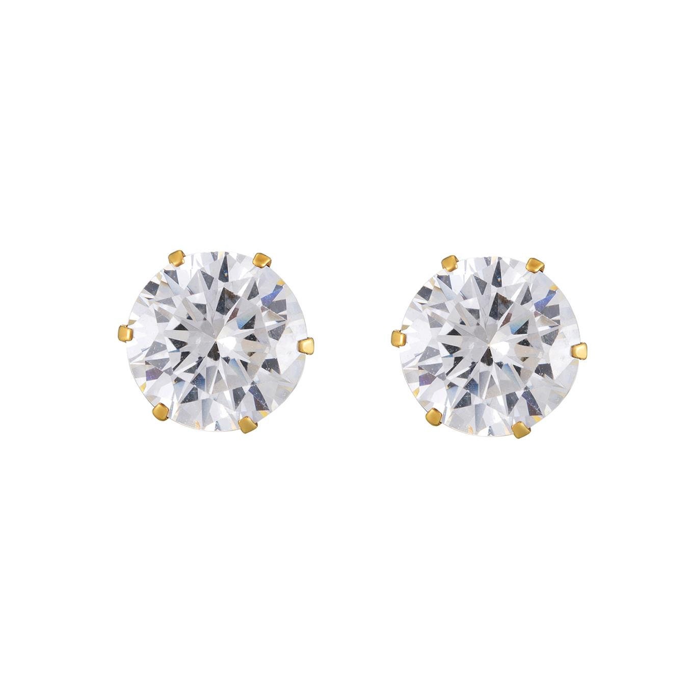 Made from sterling silver, these 18ct gold plated white cubic zirconia stud earrings are the perfect everyday accessory. Ideal to wear alone or can be stacked in multiple piercings, these measure at 7mm x 7mm to create a subtle and stylish look.