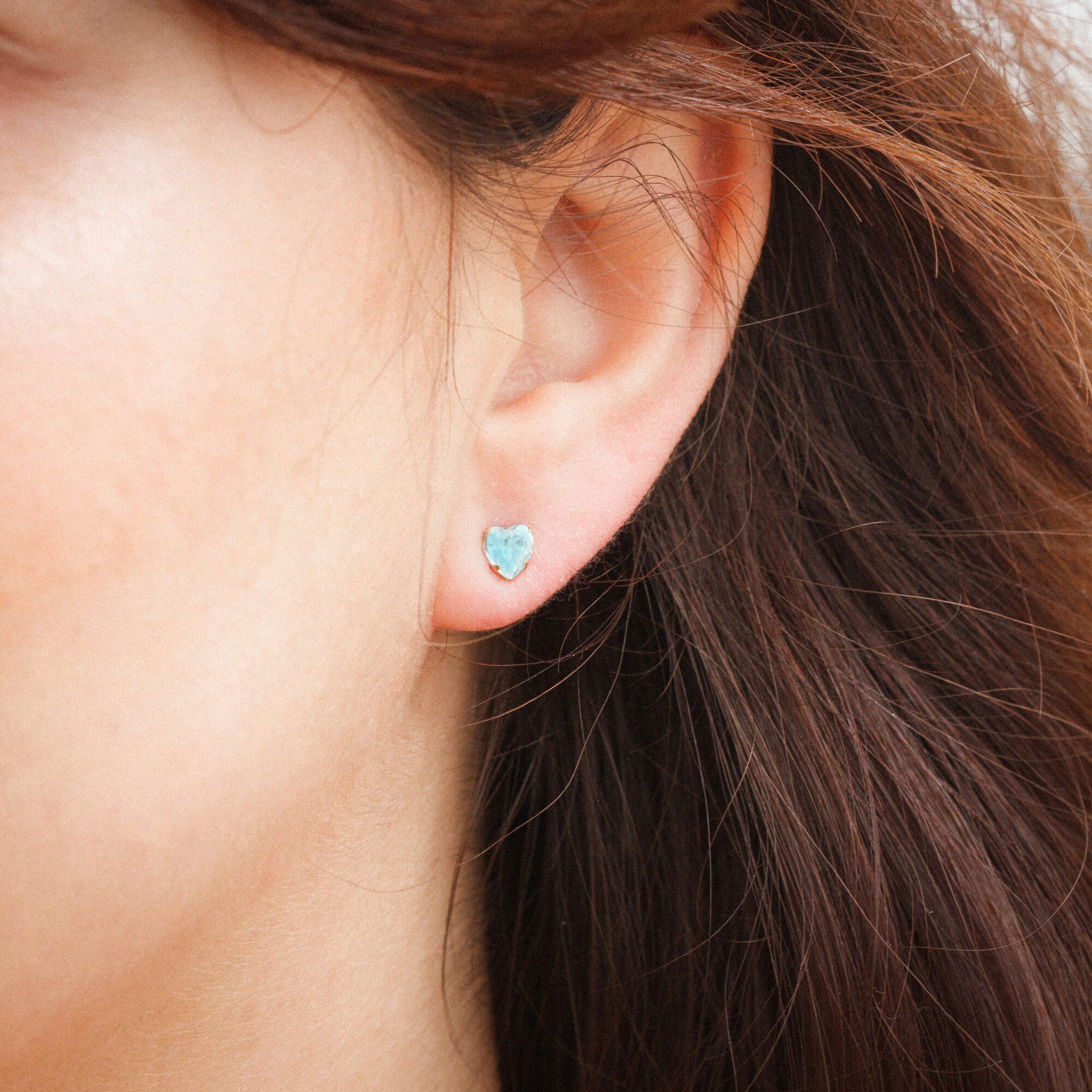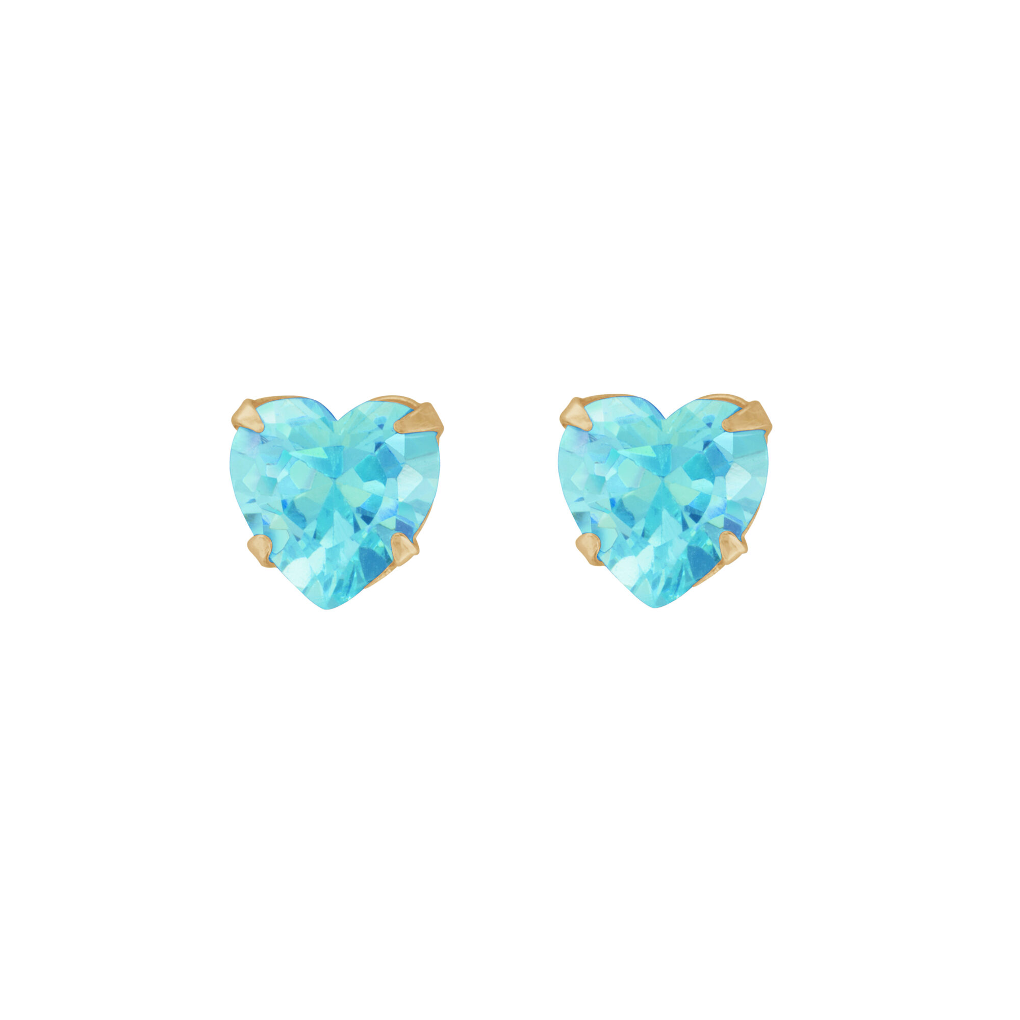 These heart Aqua Cubic Zirconia stud earrings are handmade in the UK from 9ct yellow gold and fasten behind the ear with butterflies. Measuring 5mm these heart cubic zirconia earrings are bright and sparkle in the light. The heart shaped stone setting creates an original jewellery piece that is cute as well as sophisticated. The earrings are presented in a small gift box box and make the ideal gift for someone special.