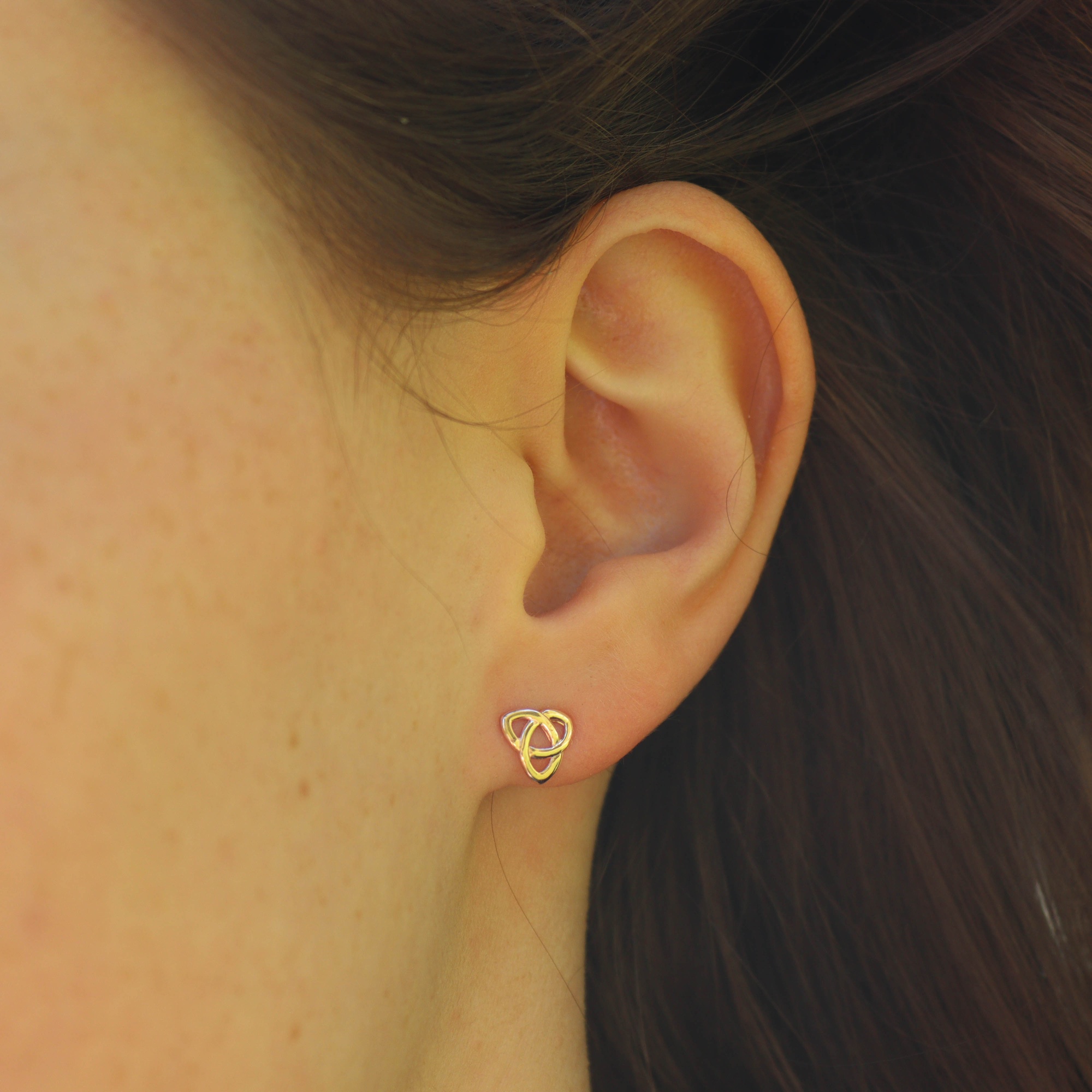9ct yellow gold Celtic trinity knot stud earrings. Available in 9ct rose gold or 9ct yellow gold.
