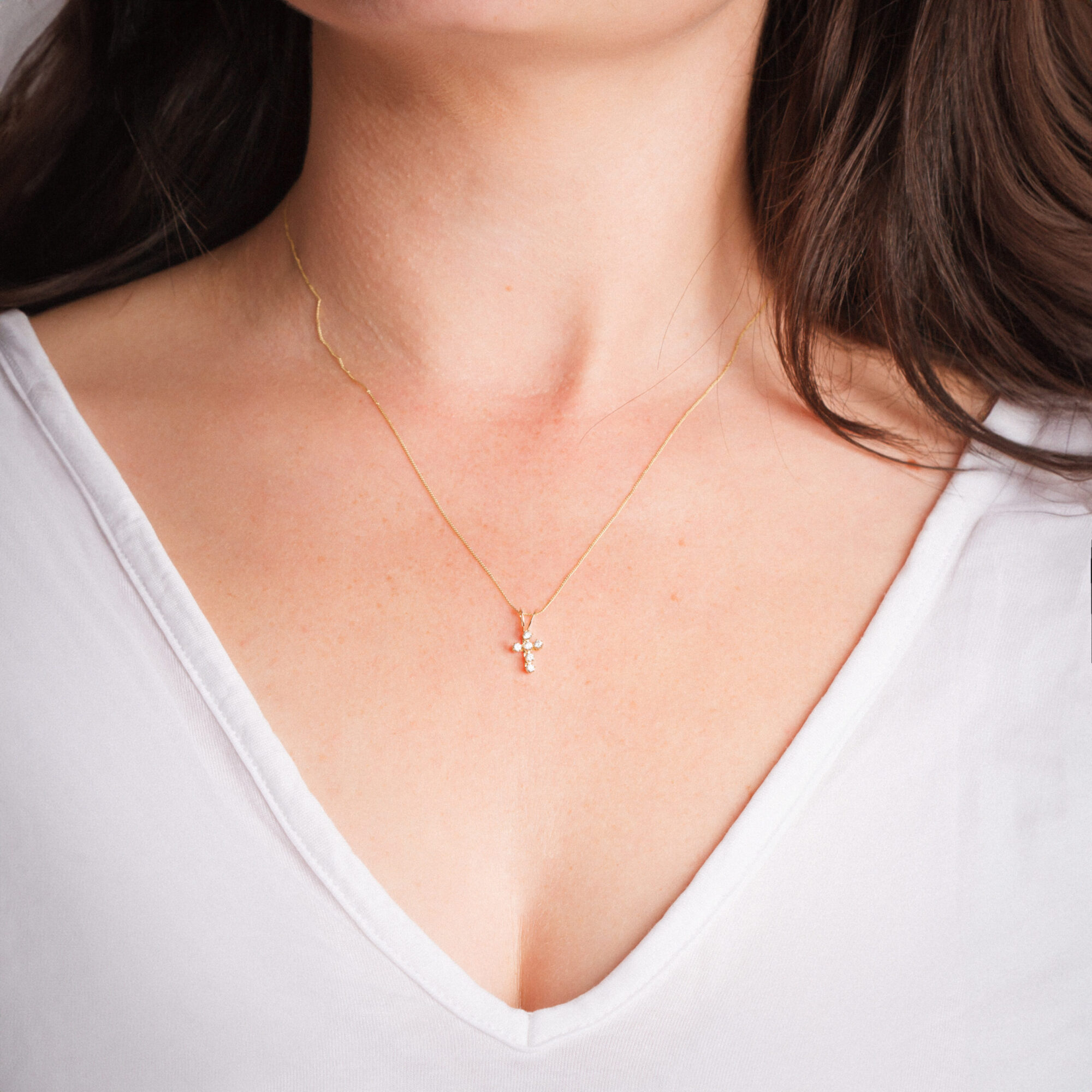 • Features a cross pendant adorned with sparkling cubic zirconia