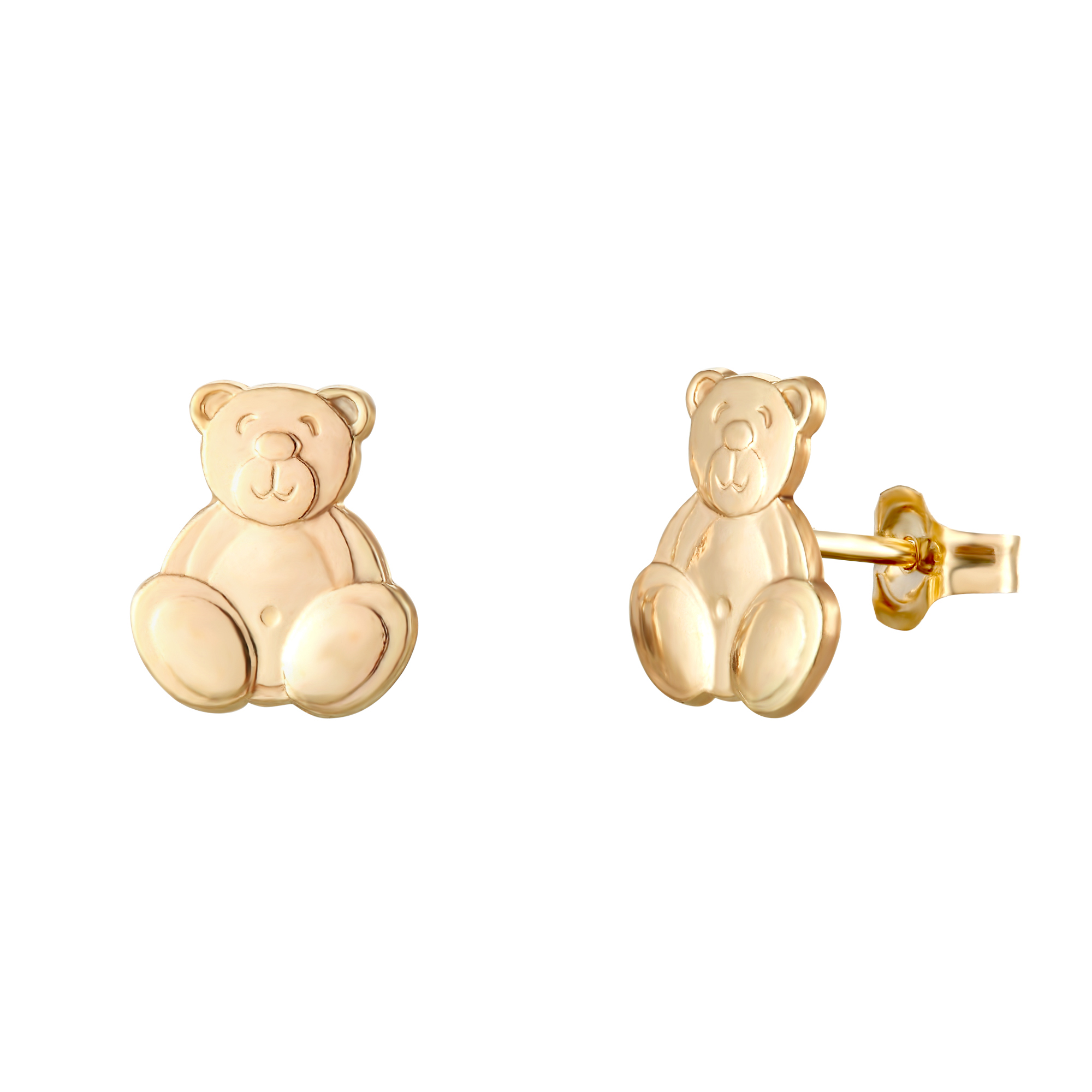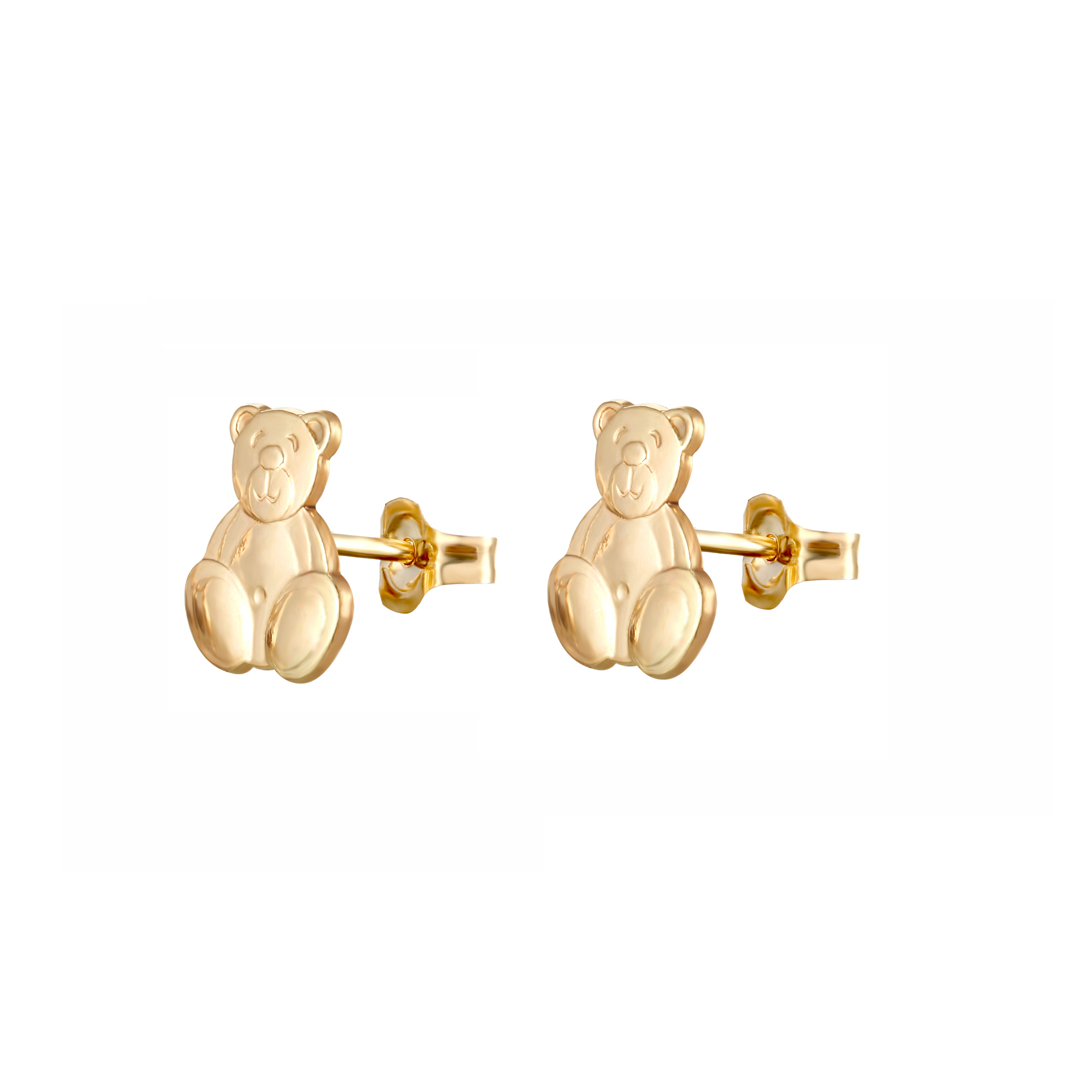 This cute pair of teddy bear stud earrings is manufactured and hand-finished in the UK from 9ct yellow gold and they fasten behind the ear with butterflies. They would make the ideal gift or stocking filler for a young girl. These earrings come in a beautiful presentation box and would make an ideal gift for someone special.