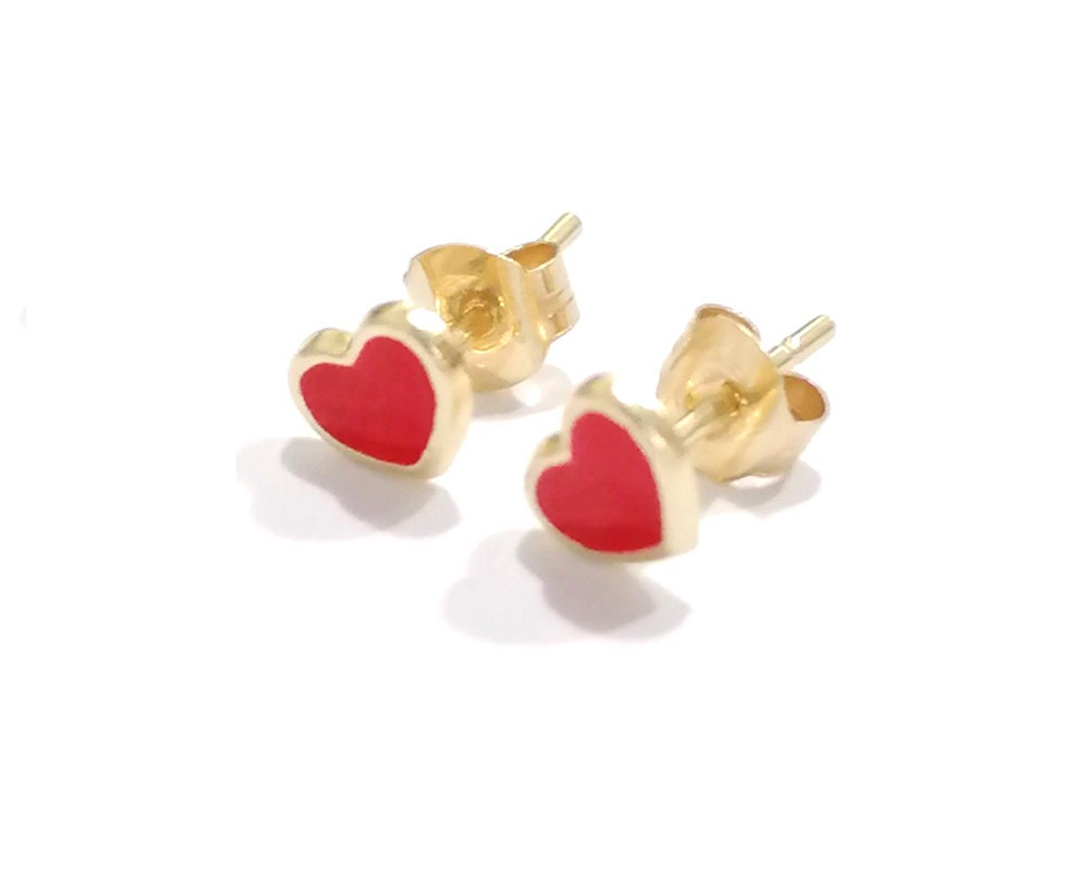 • Enamel red heart stud earrings