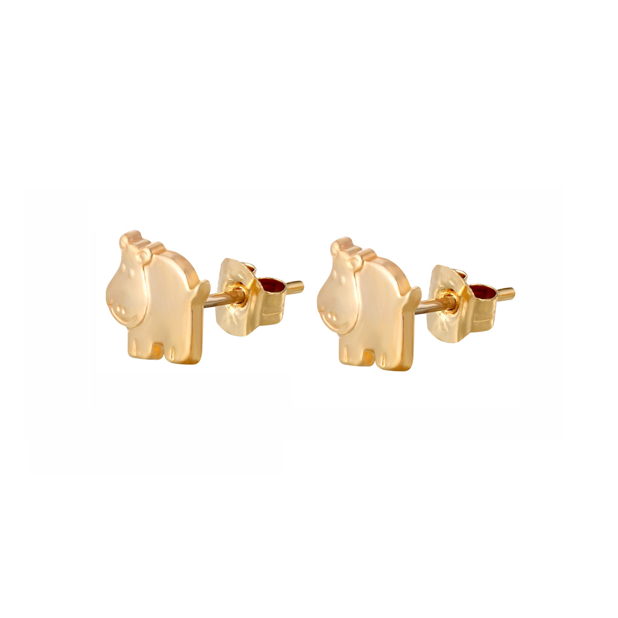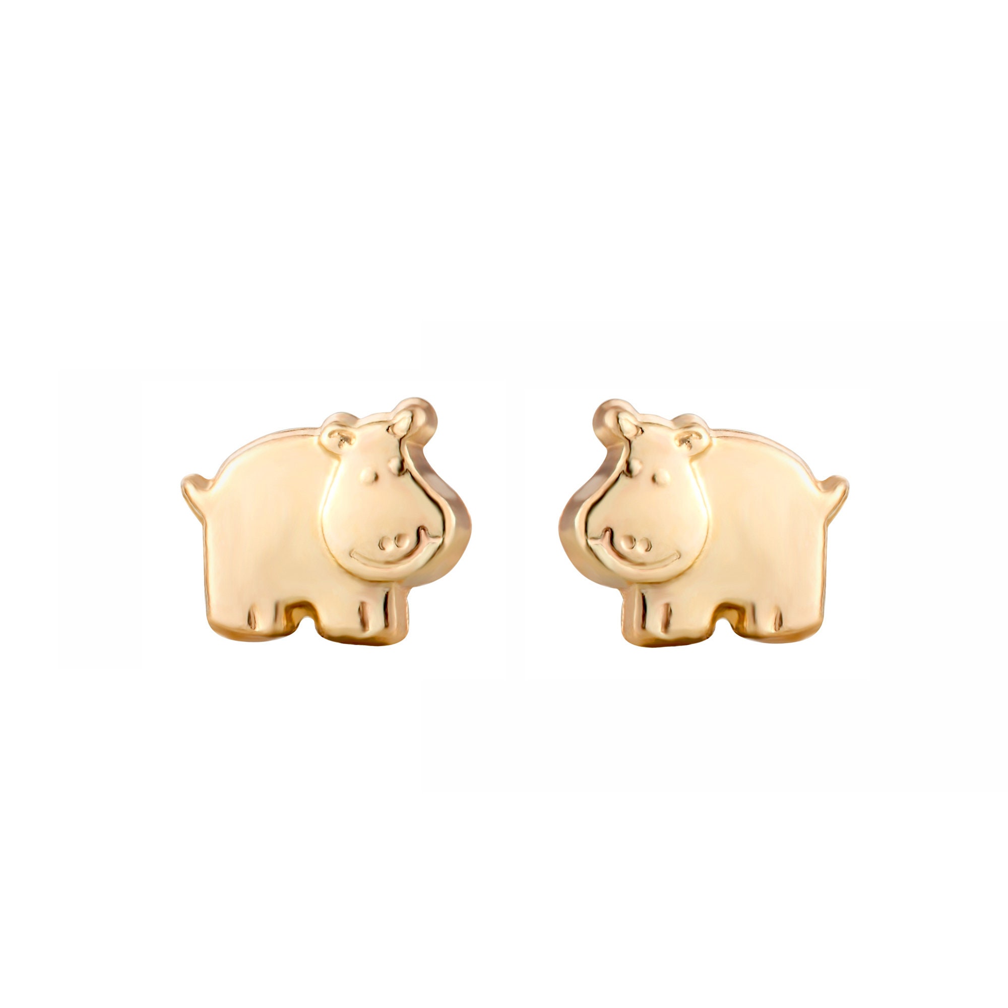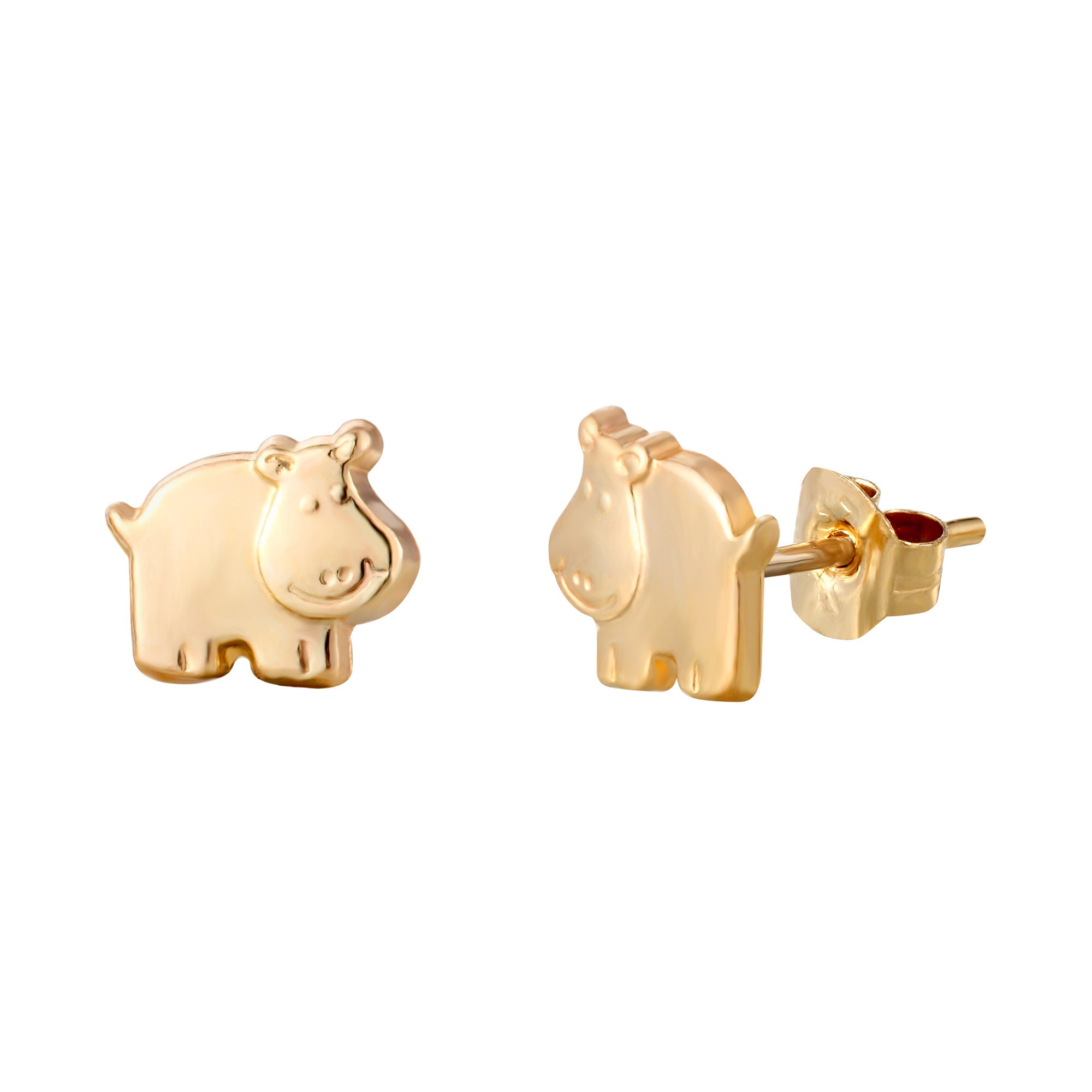 9ct gold hippo animal stud earrings