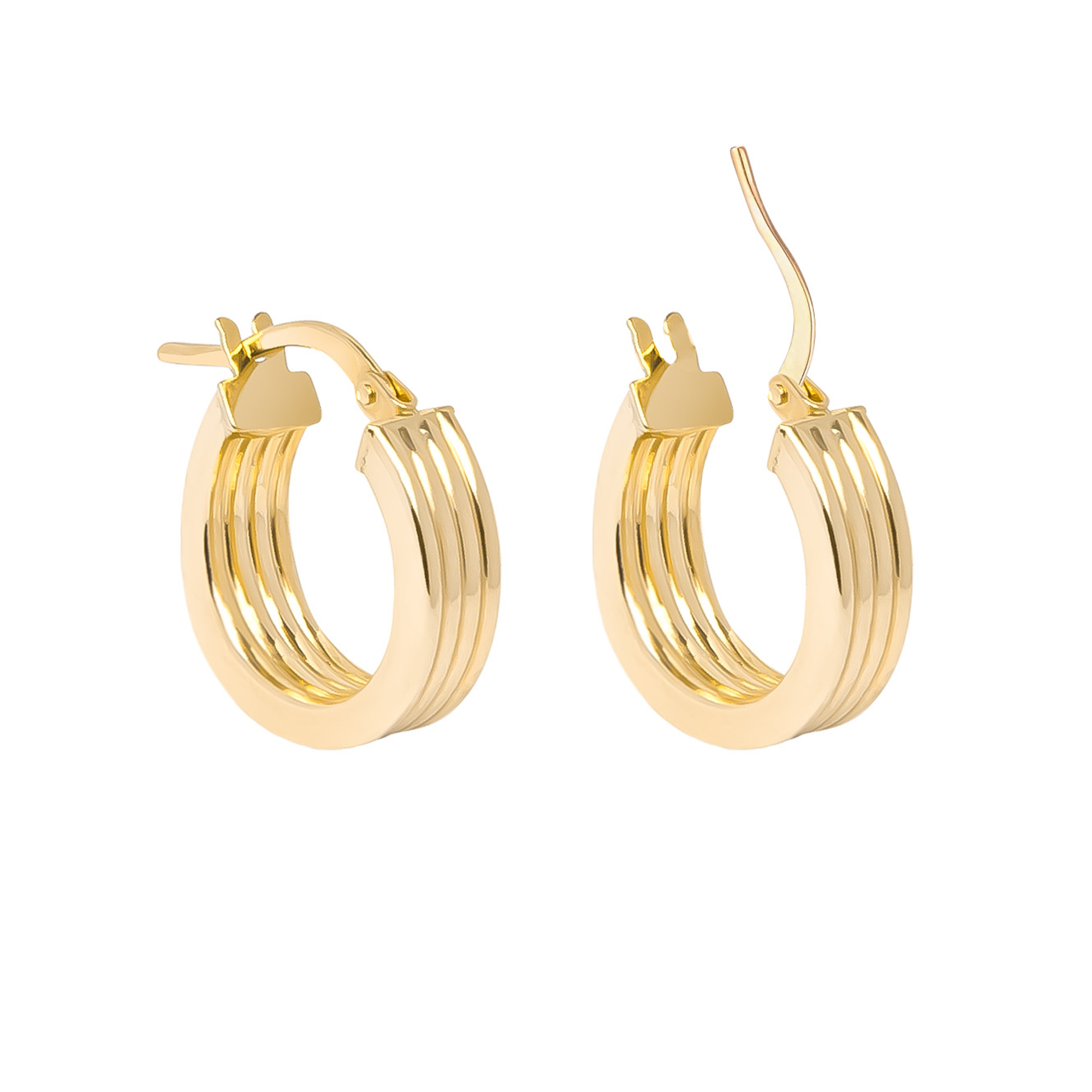 A classic pair of Italian solid 9ct gold creole hoop earrings. Crafted by the experts and finished with a modern, ribbed design these beautiful earrings are perfect for your every-day or for when you want to elevate an outfit. They come in a smart presentation box making them ready for gifting.