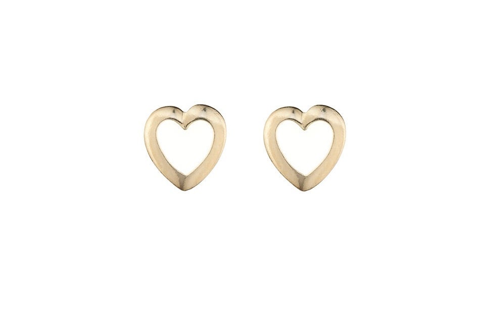 9ct gold rounded pierced heart stud earrings