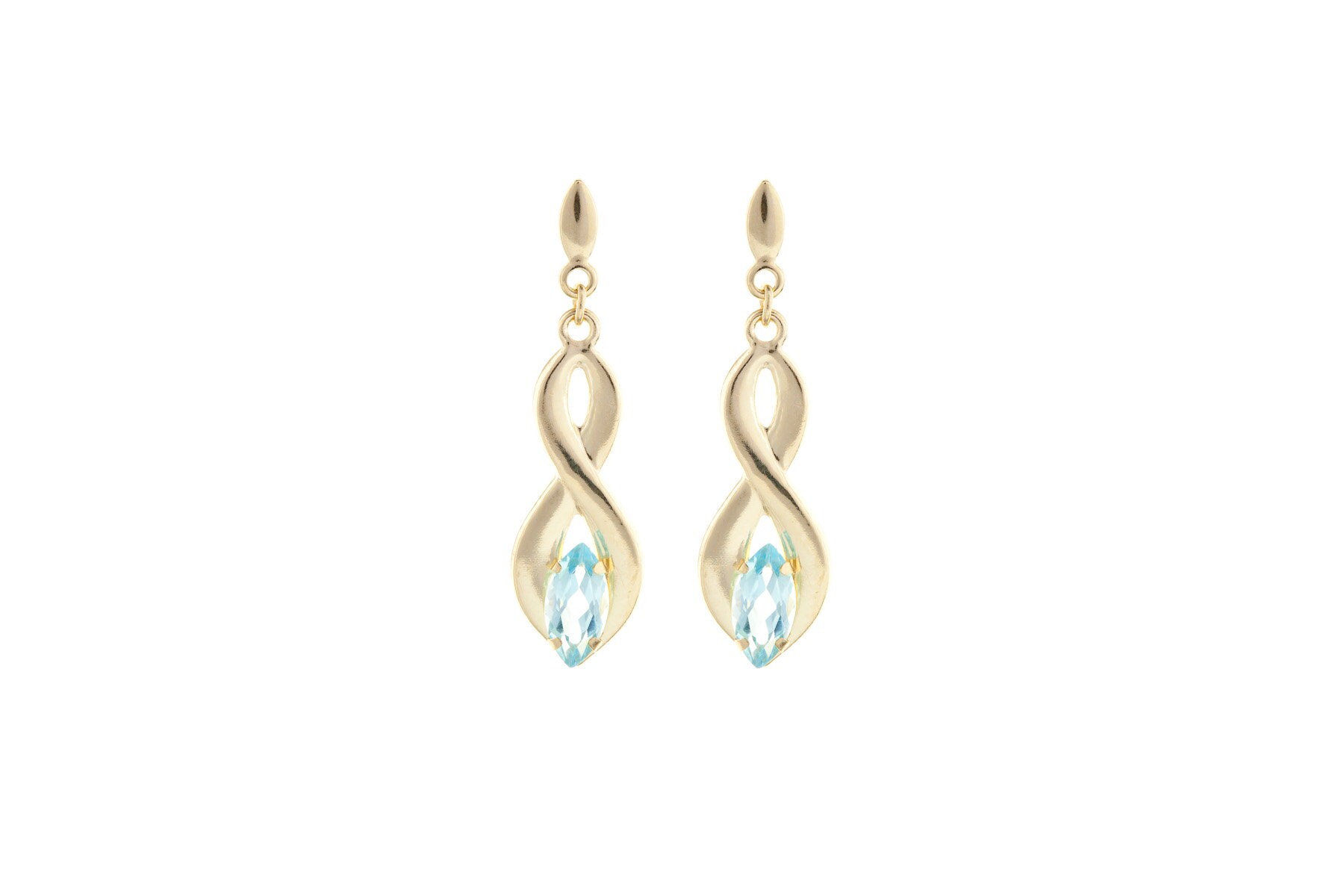 With stunning sky blue topaz crystals, these figure of 8 twist earrings are a gorgeous accessory that will add a subtle sparkle to your look. Made from 9ct yellow gold, these are a classic earring that can easily be styled to be the perfect contemporary accessory.