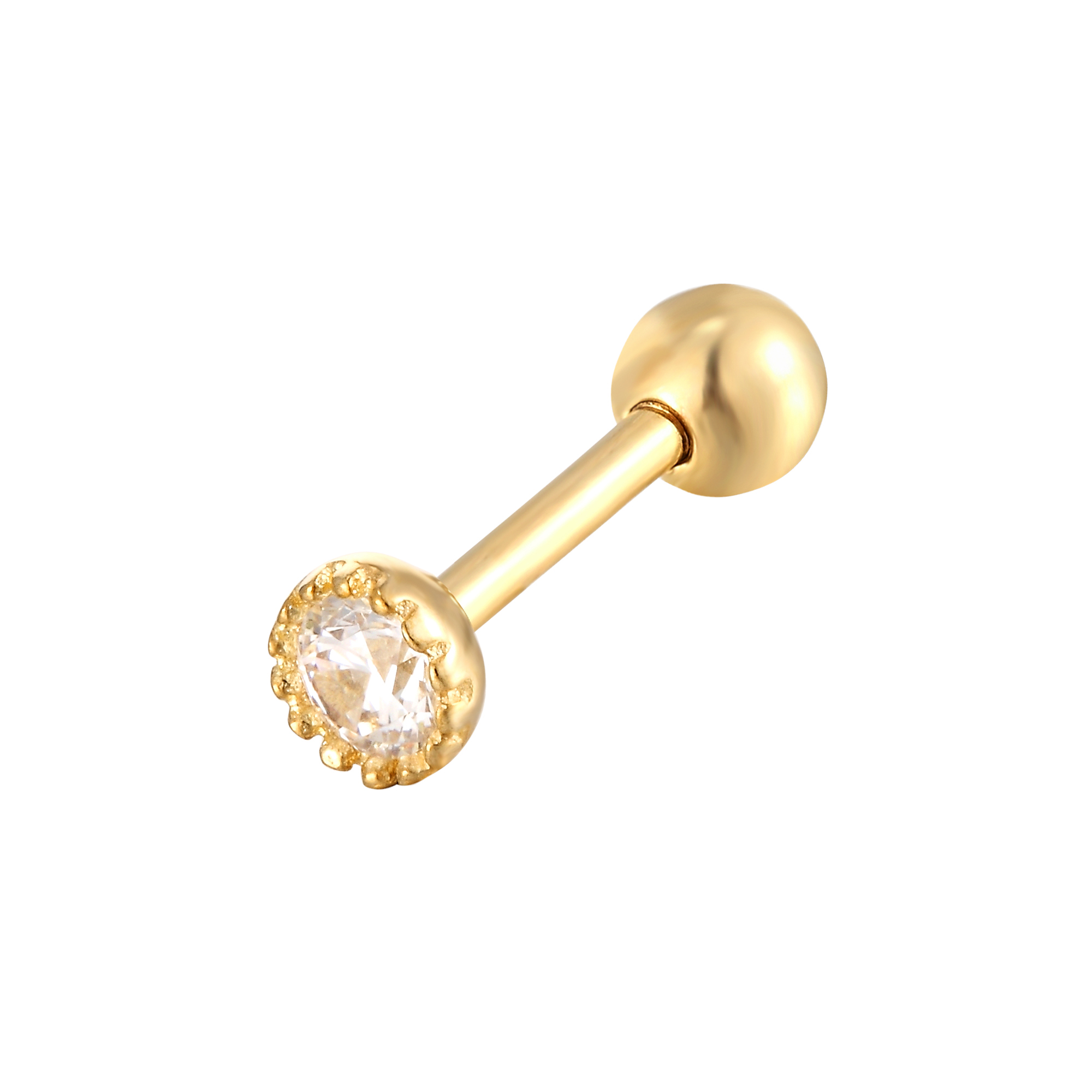 9ct Gold Tiny ball screwback Cubic Zirconia Scalloped bezel cartilage Single Stud