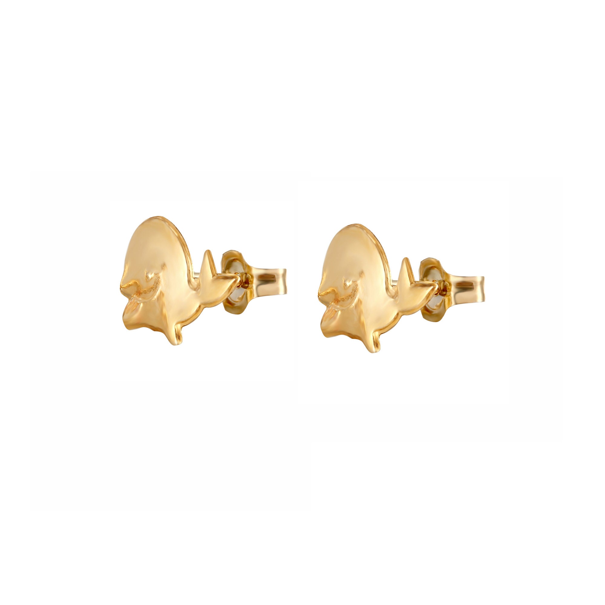 This gorgeous pair of whale stud earrings is manufactured and hand-finished in the UK from 9ct yellow gold and they fasten behind the ear with butterflies. The cute cartoon-style whale studs will add a fun touch to any outfit and coming in a presentation box, make them the ideal gift for someone special.