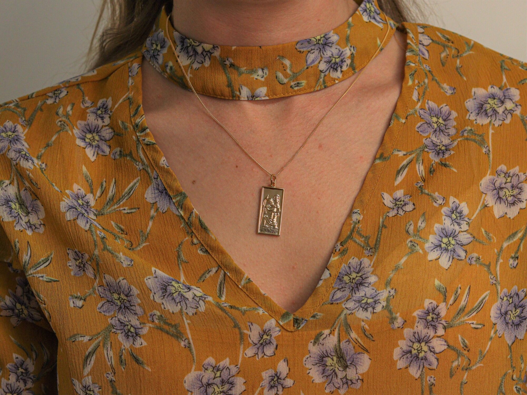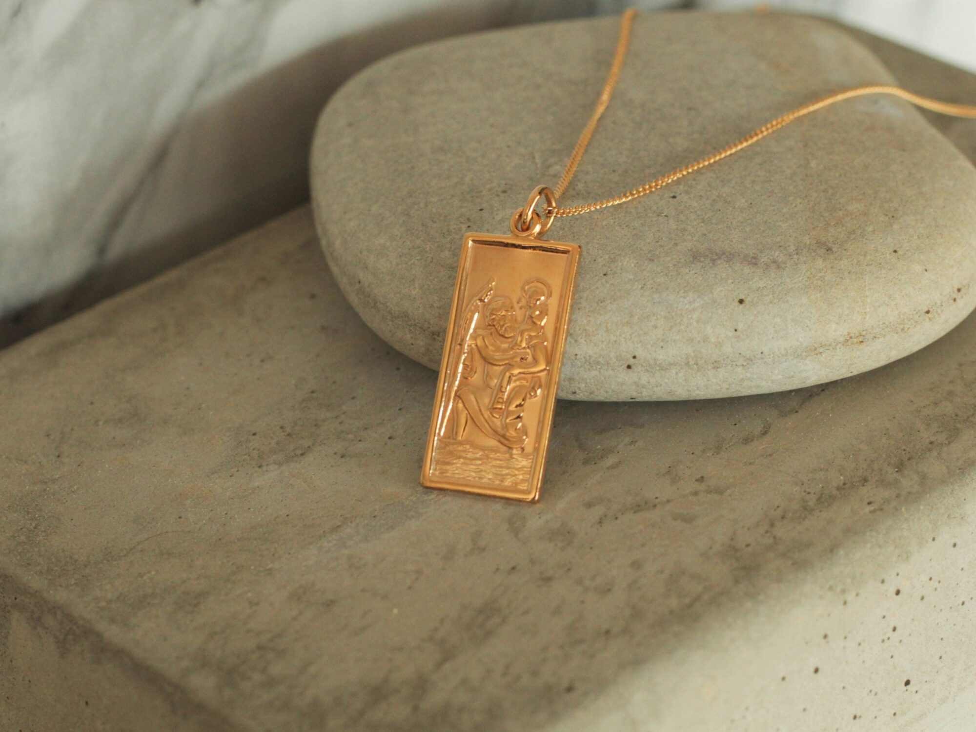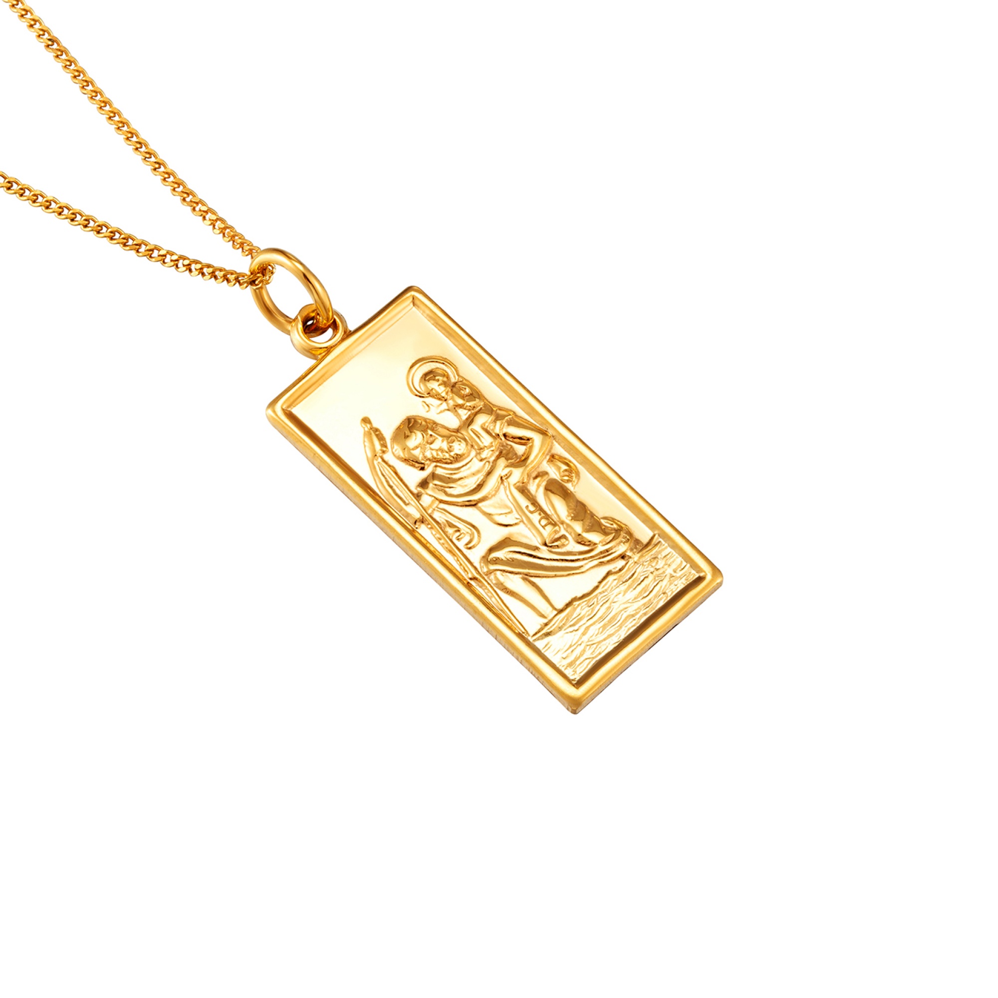 9ct rolled gold rectangle St Christopher pendant.