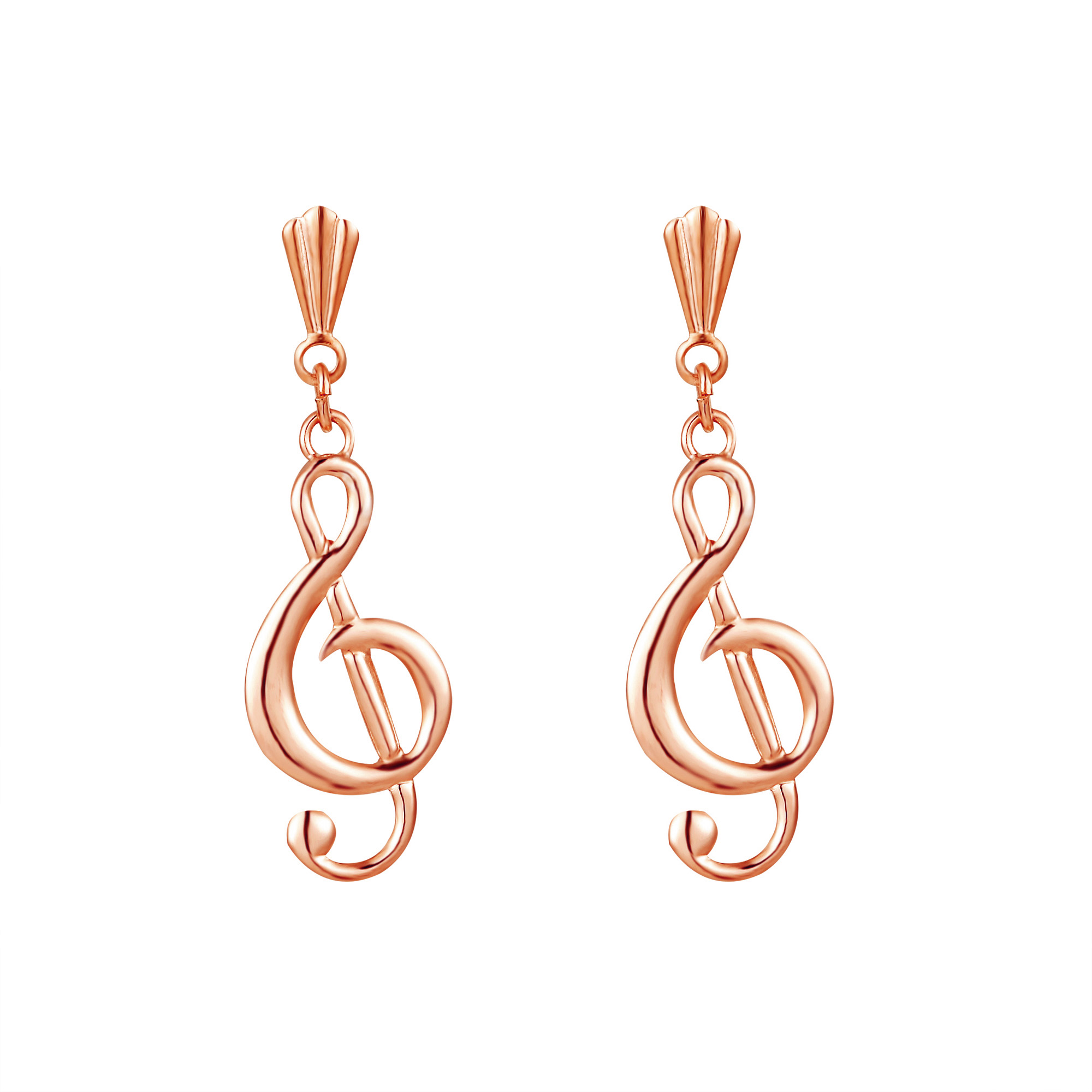 Handmade in the UK from 9ct Rose Gold these treble clef music note earrings make a playful addition to any outfit. Measuring 7.5mm(w) x 24mm (h), these earrings fasten behind the ear with butterflies and will arrive in a beautiful gift box, perfect to give to someone special.
