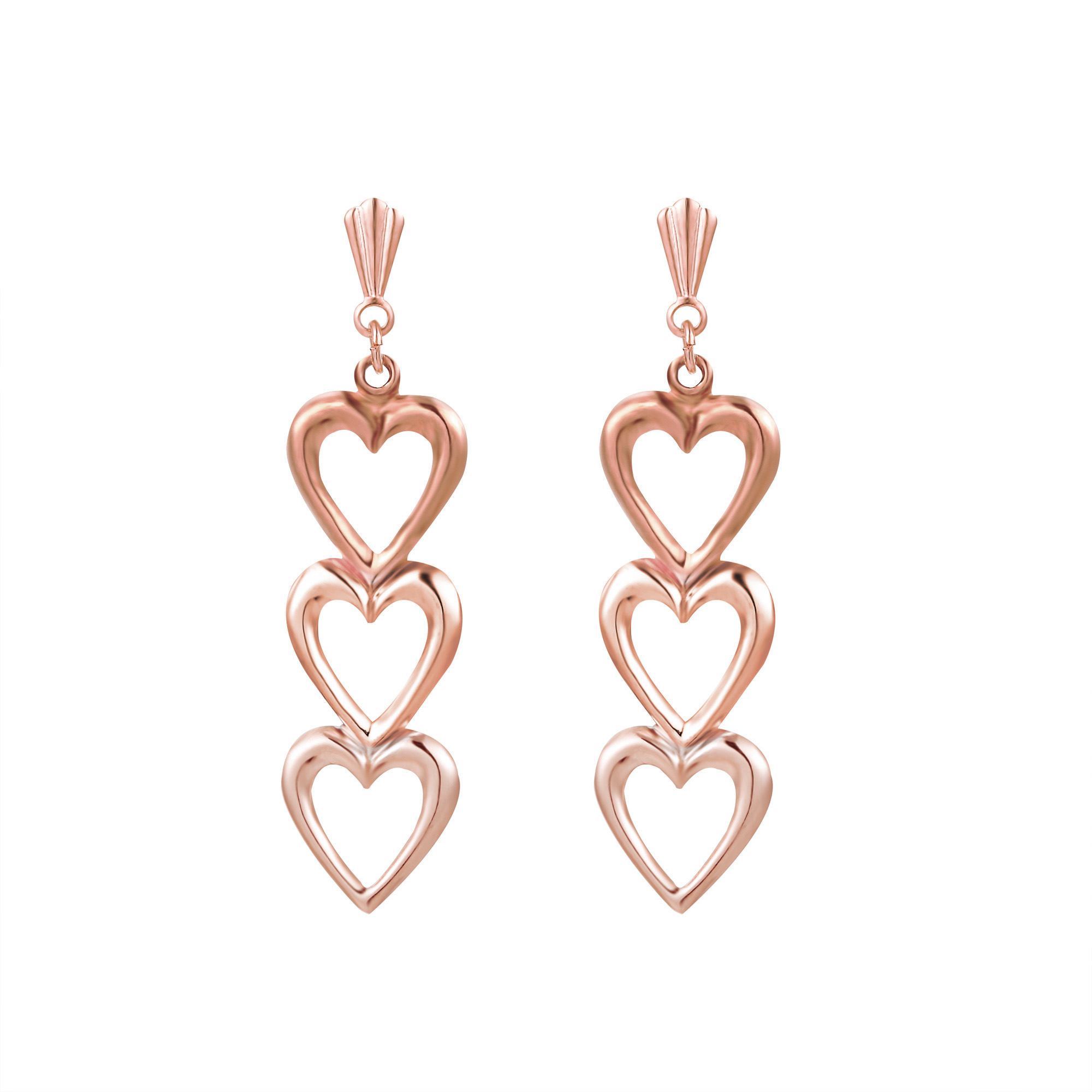 Introducing our 9ct Rose Gold Triple Heart Drop Earrings, a charming and elegant addition to any jewelry collection. These exquisite earrings are crafted from 9ct rose gold and feature a captivating design with three interconnected hearts cascading gracefully. Perfectly packaged in a stylish gift box, they make an ideal gift for a loved one or a delightful treat for yourself. Whether for special occasions or everyday wear, these earrings add a touch of romance and sophistication to any outfit.