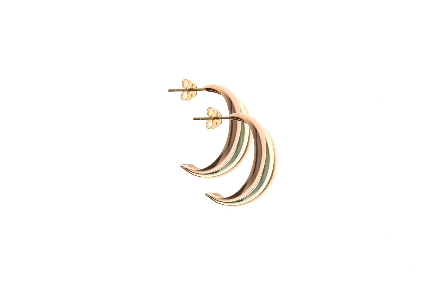 • 9ct tricolour gold russian wedding band hoop stud earrings