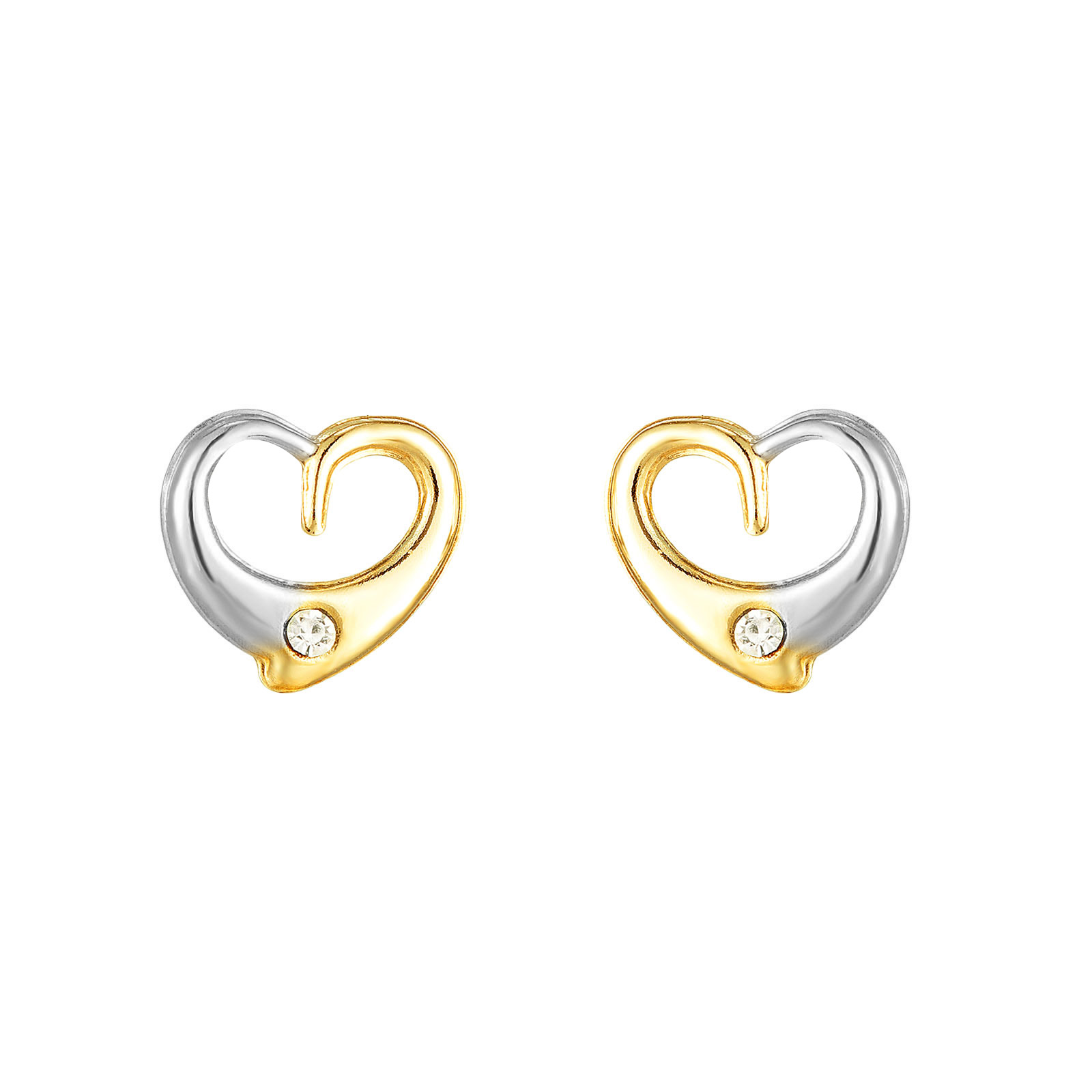 9ct Two Tone Gold 9mm Heart Crystal Stud Earrings