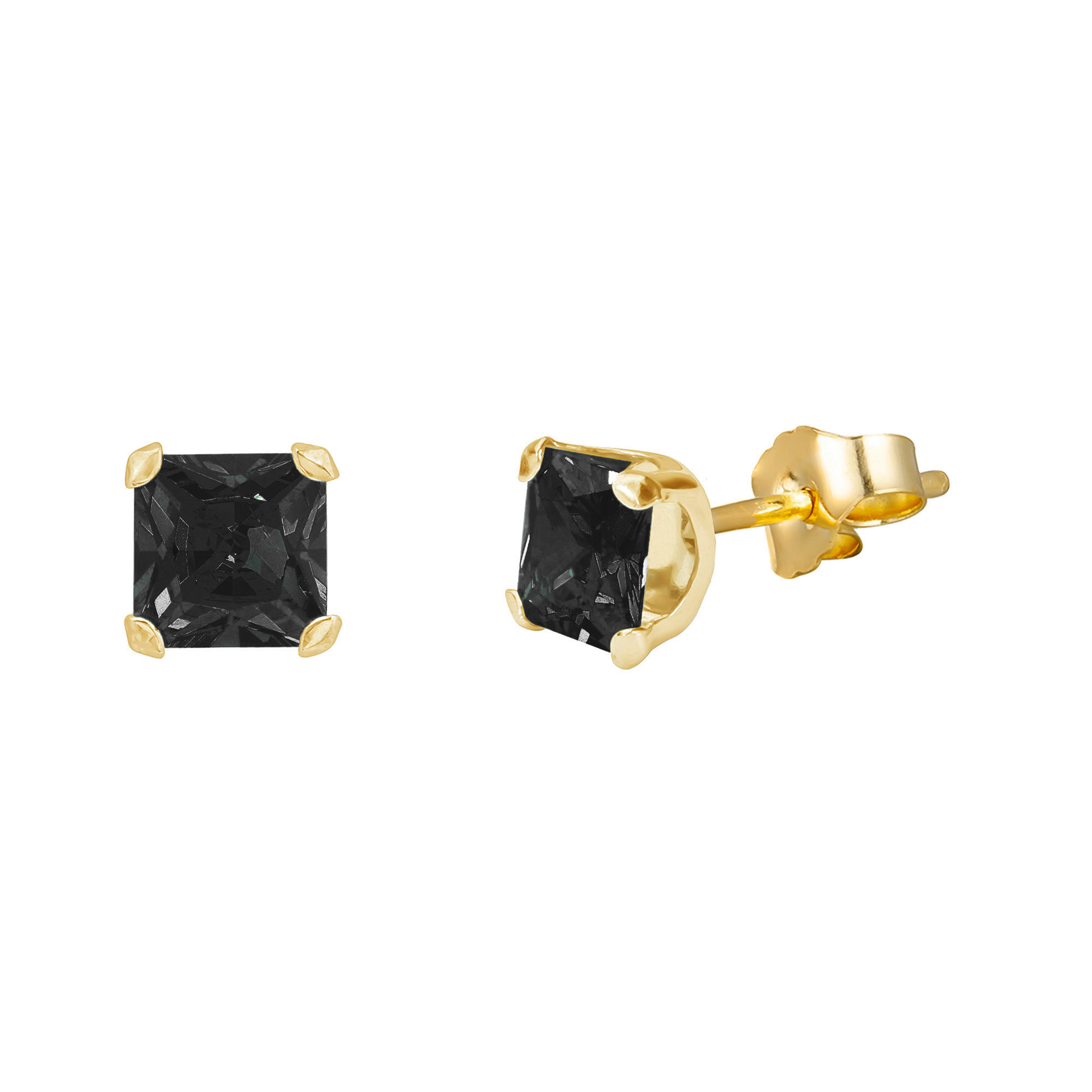 9ct Yellow Gold 4mm Black cubic zirconia square stud earrings