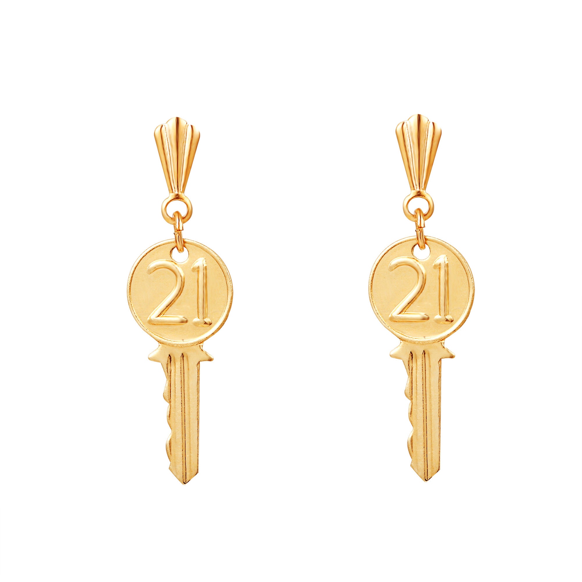 These 9ct Yellow Gold Andralok 21 Key Drop Earrings reinterpret the traditional 21 key in a way that feels refined rather than novelty-led. The circular head carries a raised “21”, flowing into a clean key silhouette that keeps the design balanced and wearable.