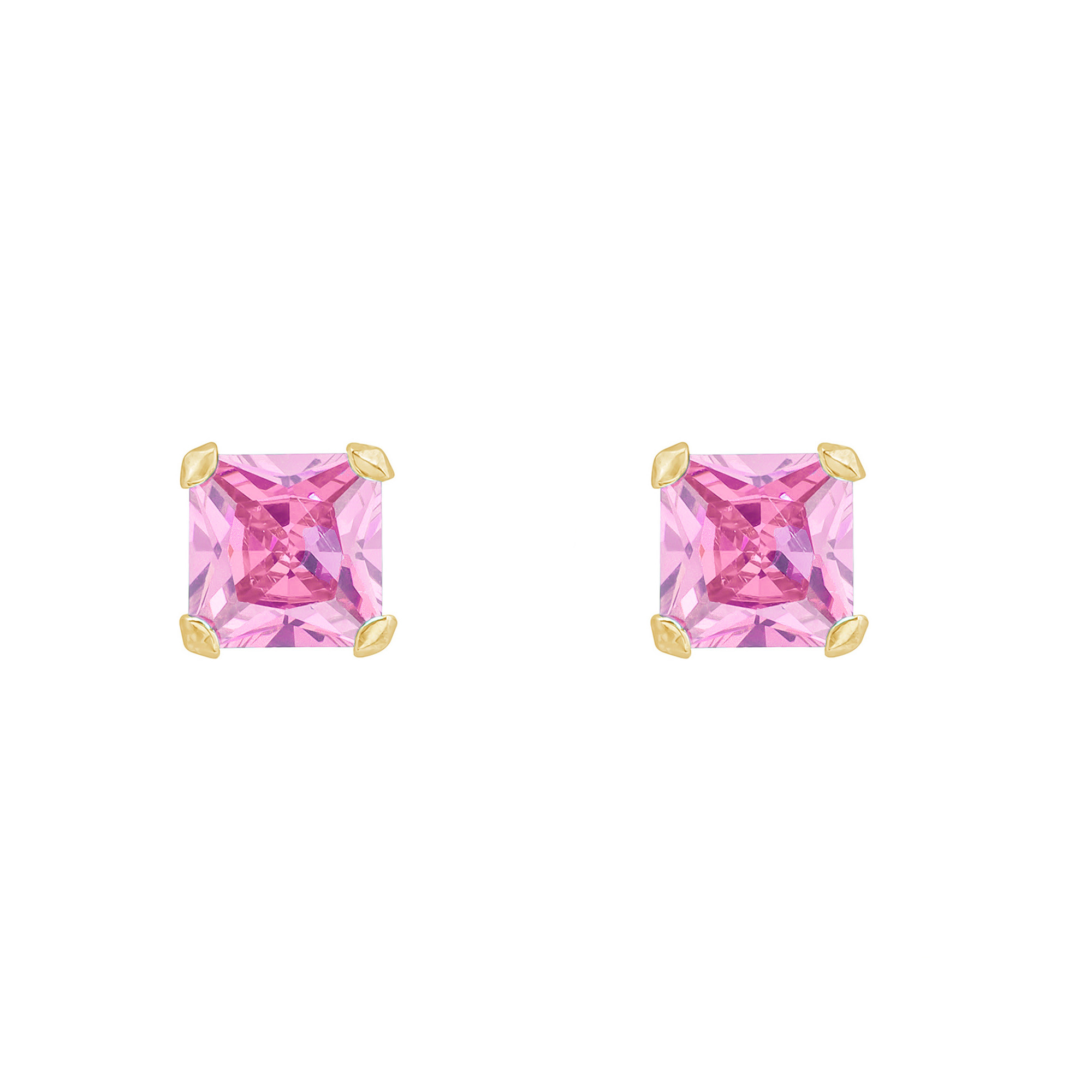 9ct Yellow Gold Andralok 4mm Pink Square Cubic Zirconia Stud Earrings