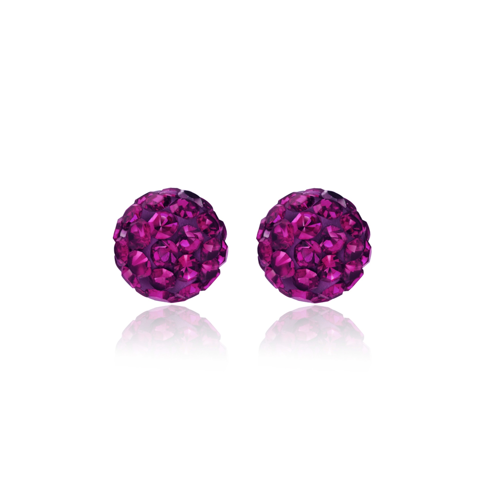 These gold amethyst glitterball stud earrings deliver bold colour and texture within a compact, rounded design. The clustered crystal surface forms a full 6mm sphere of faceted sparkle, while the warm 9ct yellow gold setting provides structure and contrast. As a result, the overall finish feels bright and expressive without becoming excessive.