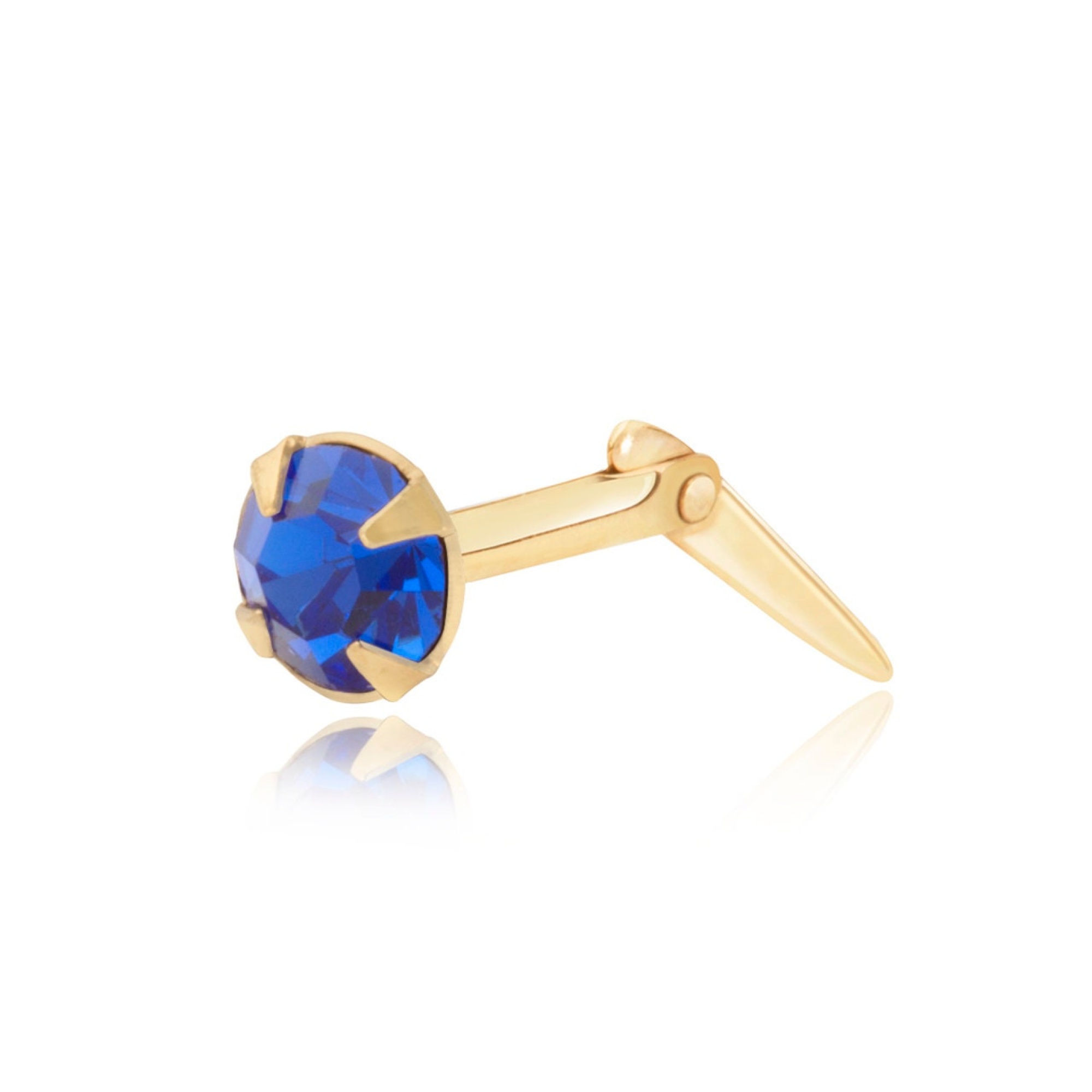 The four-claw setting plays an important role in that look. It frames the blue crystal neatly and keeps the round shape looking crisp from every angle. Because of that, the stone remains the focus while the overall finish stays clean and refined. A good nose stud should feel polished on the face. It should not look bulky or fussy. Instead, this design keeps the finish crisp, clean, and balanced. The blue crystal adds richness and intensity, while the yellow gold gives it warmth and contrast. Together, they create a look that feels premium and very easy to style. You can wear this nose stud on its own for a simple finish. Or, instead, you can pair it with hoops, huggies, or studs for a more layered jewellery look.