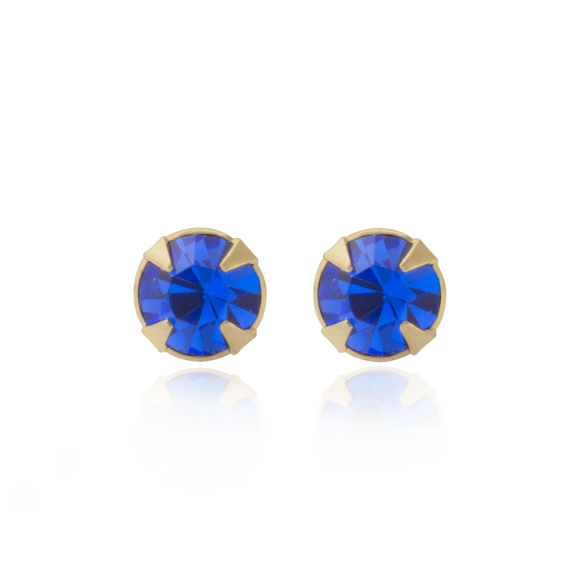 • Blue crystal in a classic four claw round stud setting