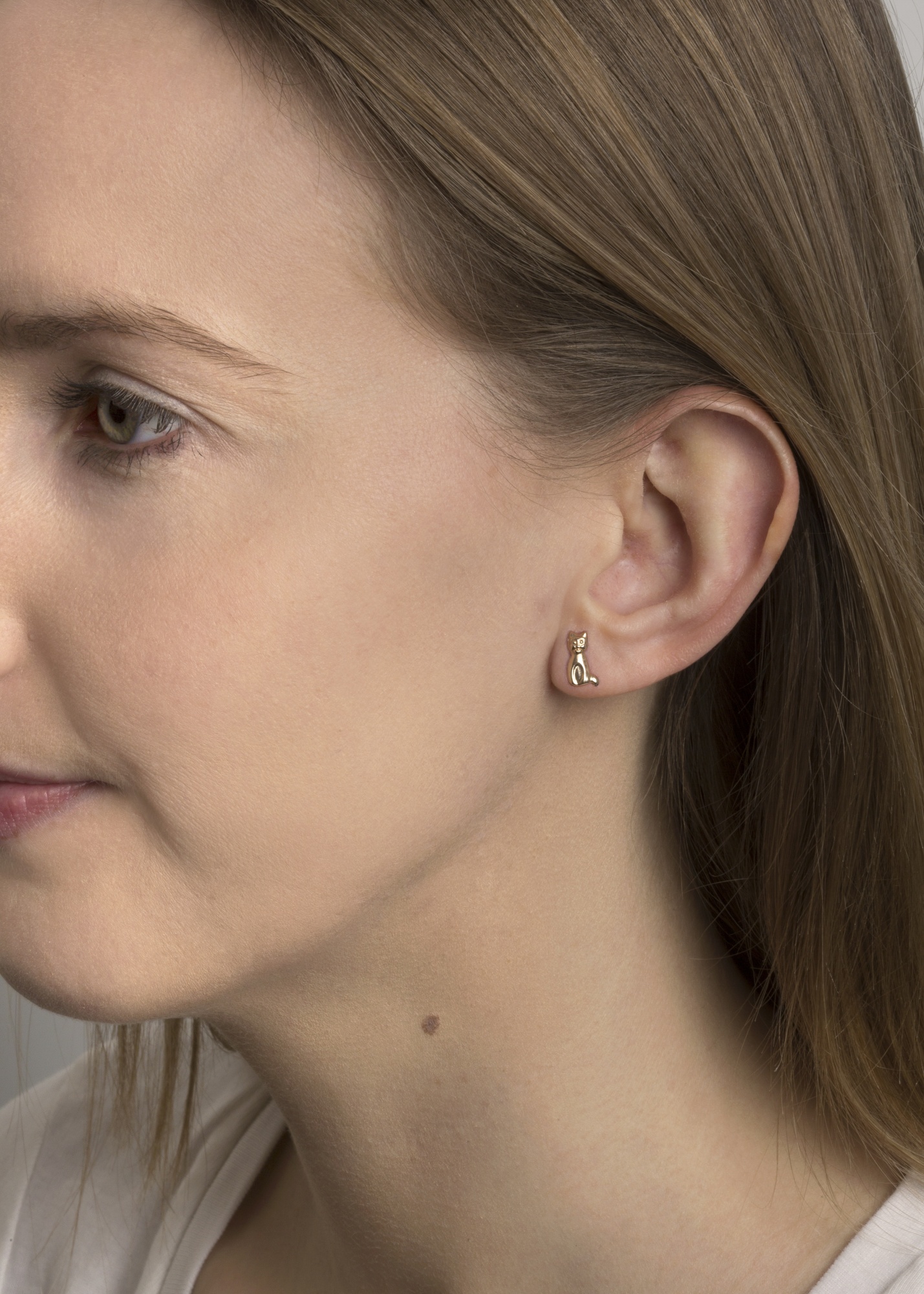 Because of their compact size, these gold cat stud earrings sit neatly against the ear and integrate easily with other yellow gold pieces. They work well as a subtle standalone feature; however, they also complement layered styling. The overall effect remains clean and intentional, with proportion and shape working together.