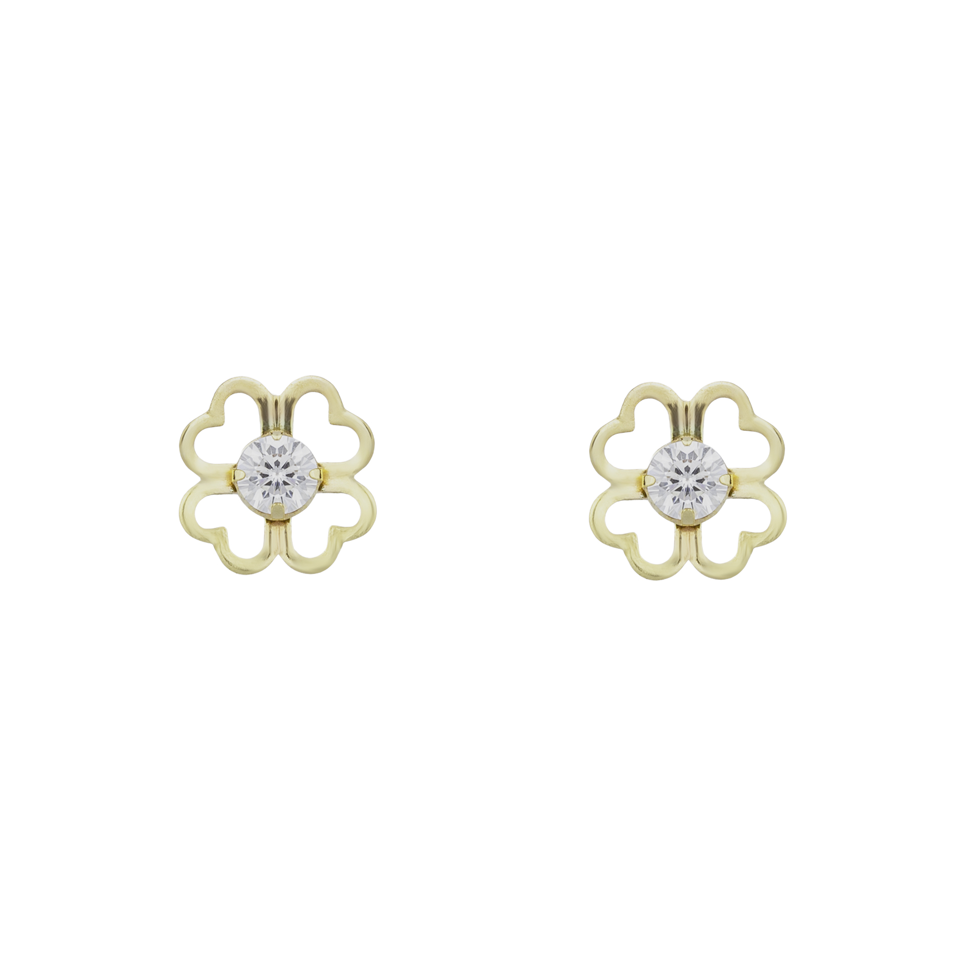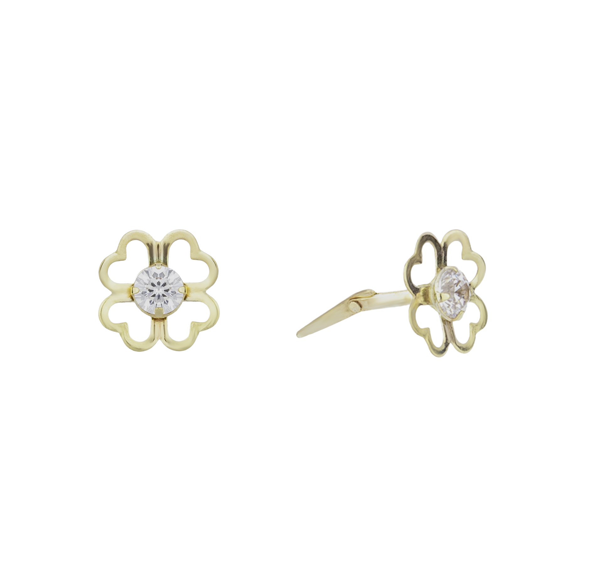 Overall, these gold clover cz stud earrings offer a clean shape, a bright centre stone, and a premium finish. The open heart clover design gives them character, while the 9ct Yellow Gold keeps the look warm and polished from every angle.