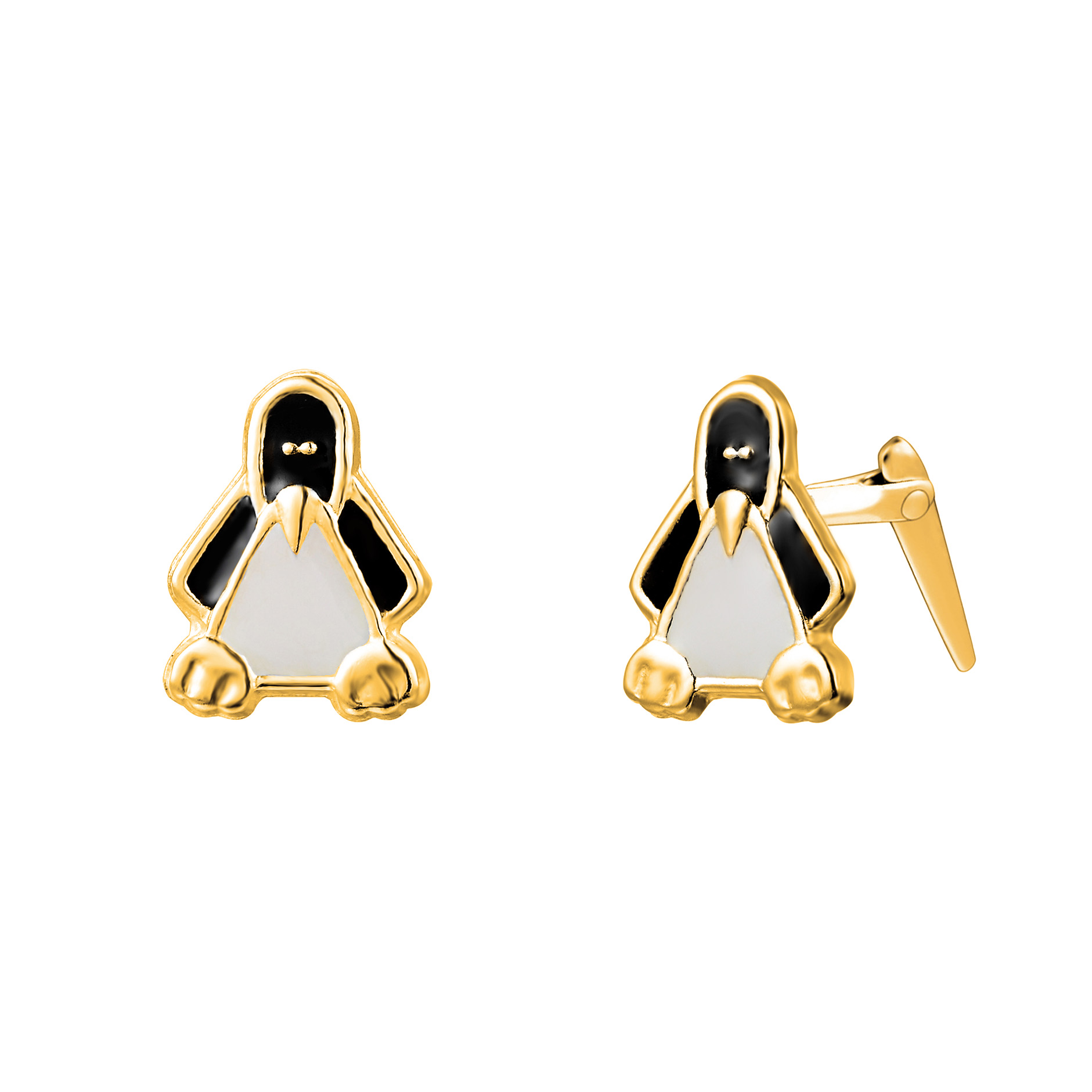 Playful, balanced and secure, these gold penguin stud earrings combine character with precision engineering for confident everyday wear.