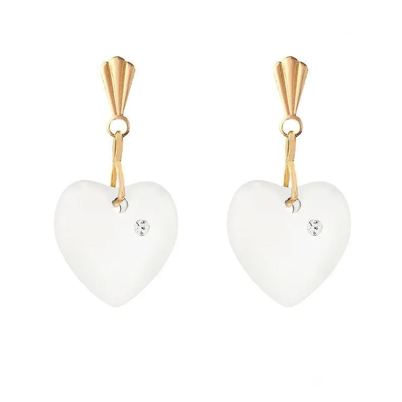 As a result, the 9ct gold frosted heart earrings feel understated and refined. The matte crystal softens the silhouette, while the clean gold frame keeps the overall structure defined. Because the finish is muted, the heart shape becomes the focus rather than surface sparkle.