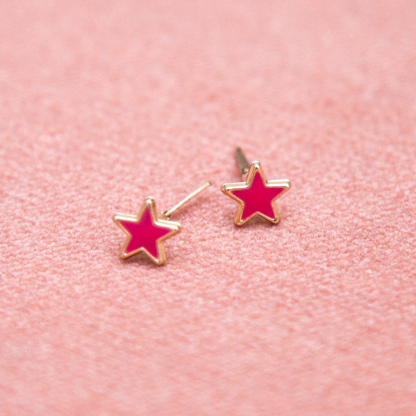 Measures approx. 6mm (W) x 6mm (H). The compact size makes these gold hot pink star studs suitable for everyday wear while still offering noticeable colour.