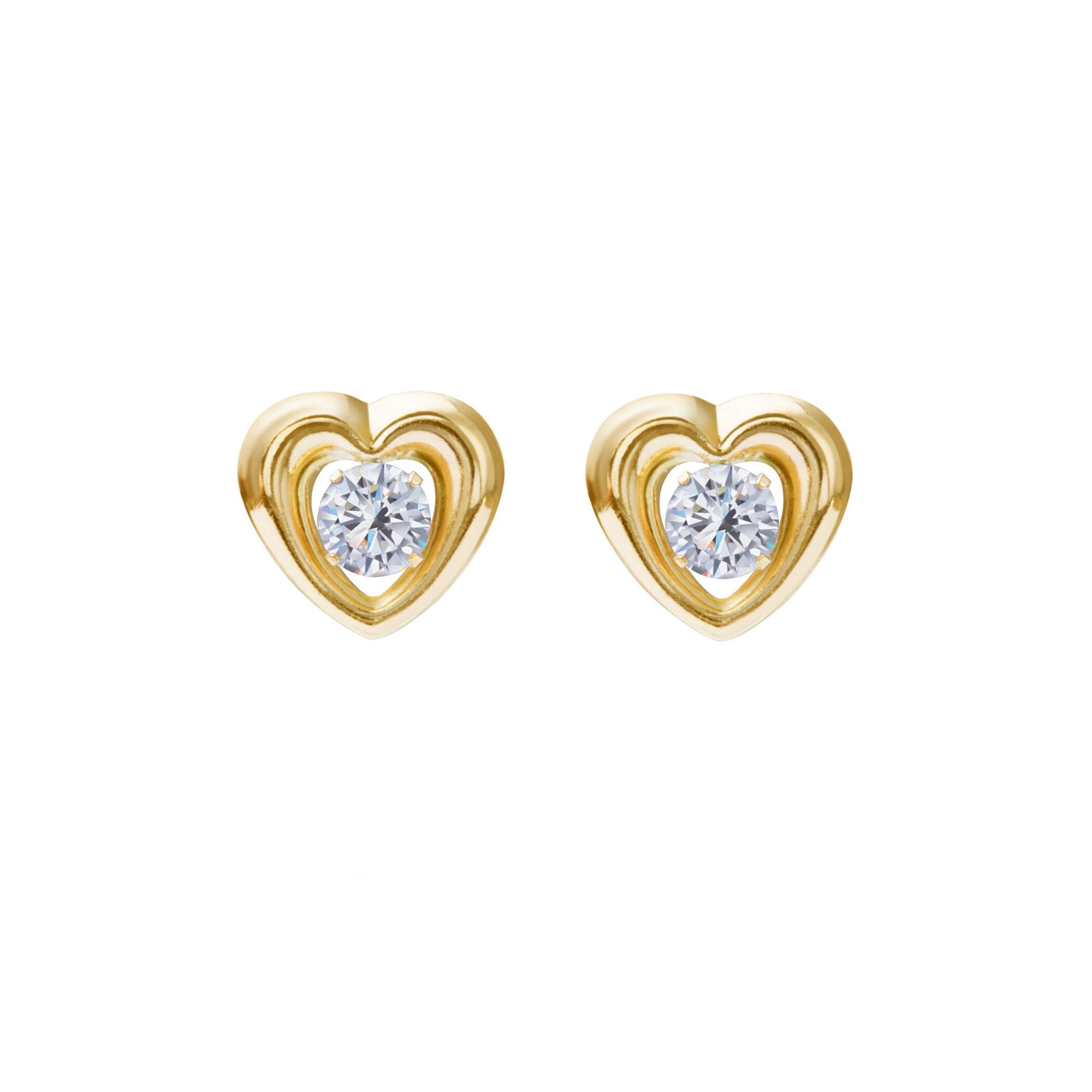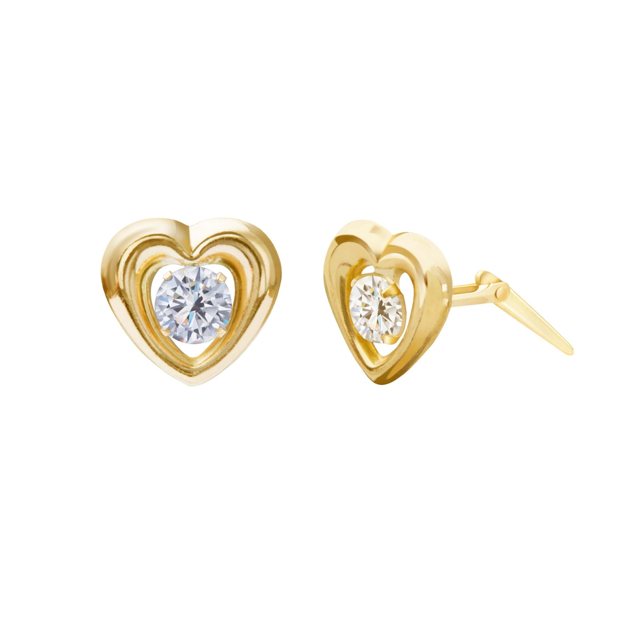 Defined by layered form and refined sparkle, these gold heart CZ stud earrings deliver symbolic design with dependable everyday wear.