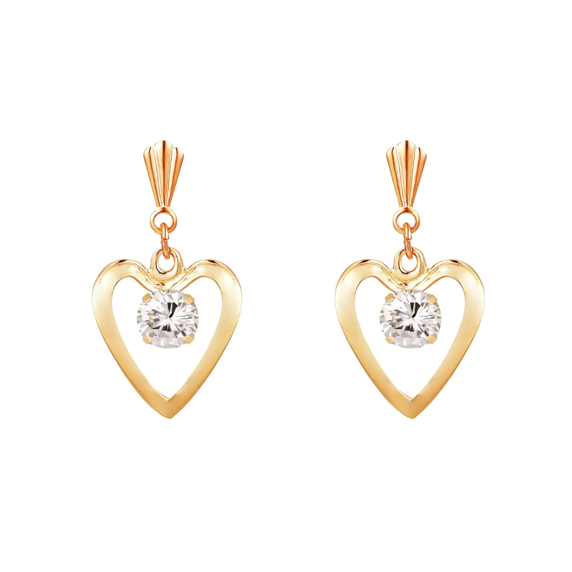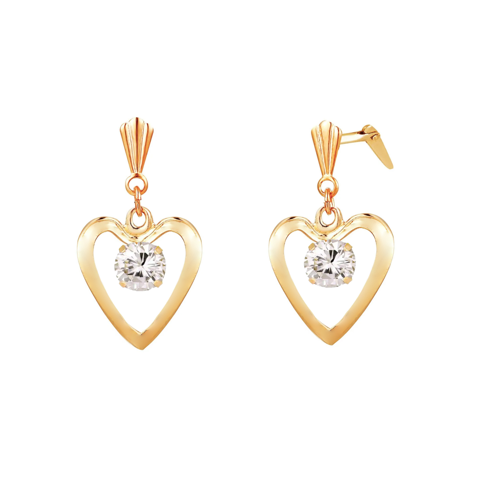 Crafted in solid 9ct yellow gold, the warm tone enhances the clarity of the crystal. The smooth gold outline frames the stone without overpowering it, allowing the yellow gold open heart drop earrings to maintain clean proportion and visual balance.