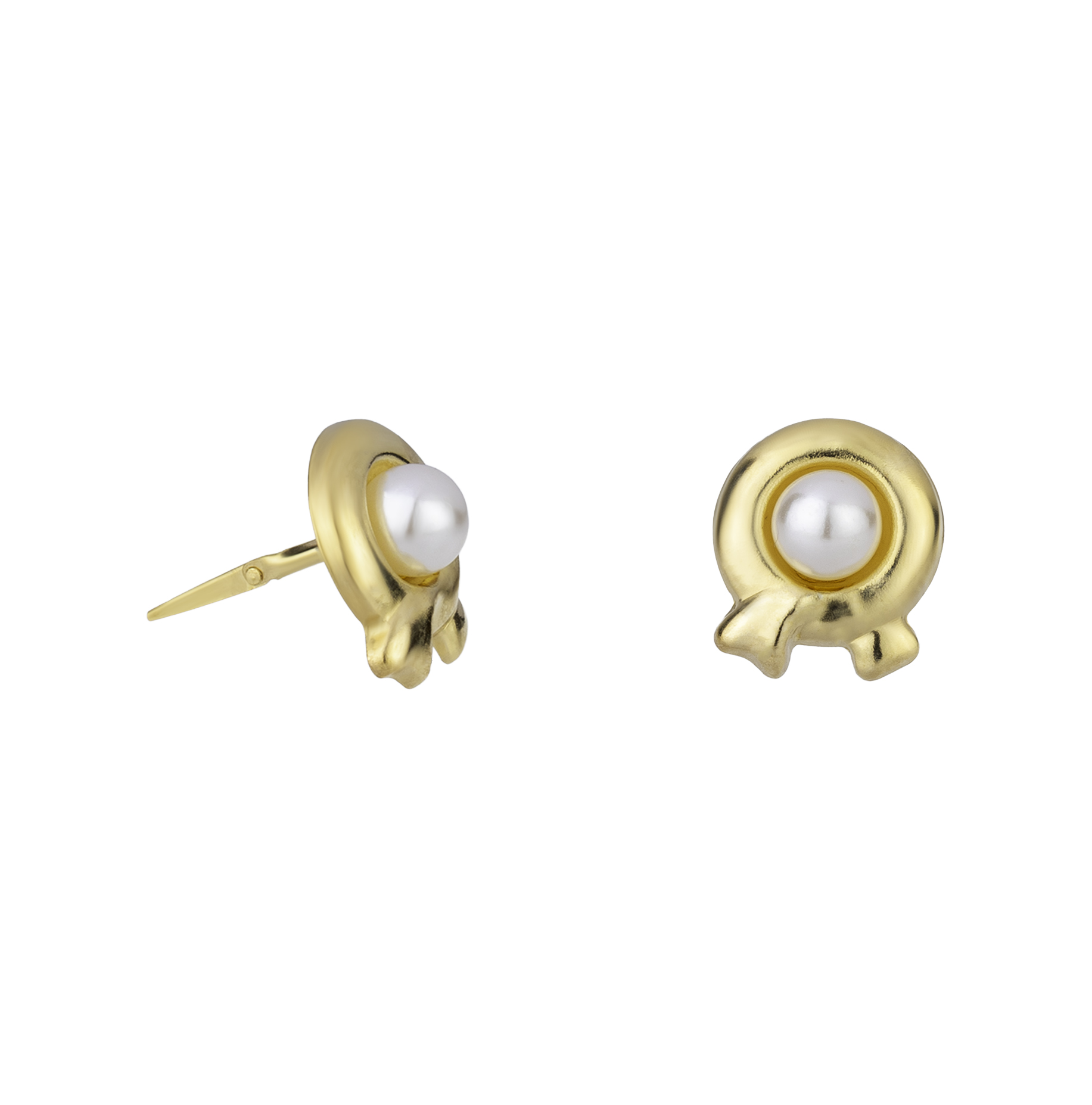 What makes this pair stand out is the scarf-like wrap around the pearl. Rather than using a simple round frame, the gold curves around the centre stone in a more fluid way. That gives the earrings a warmer and more considered finish. It also helps the design feel dressy without becoming formal or heavy. If you want gold pearl scarf studs that look feminine and timeless, this pair delivers that beautifully.