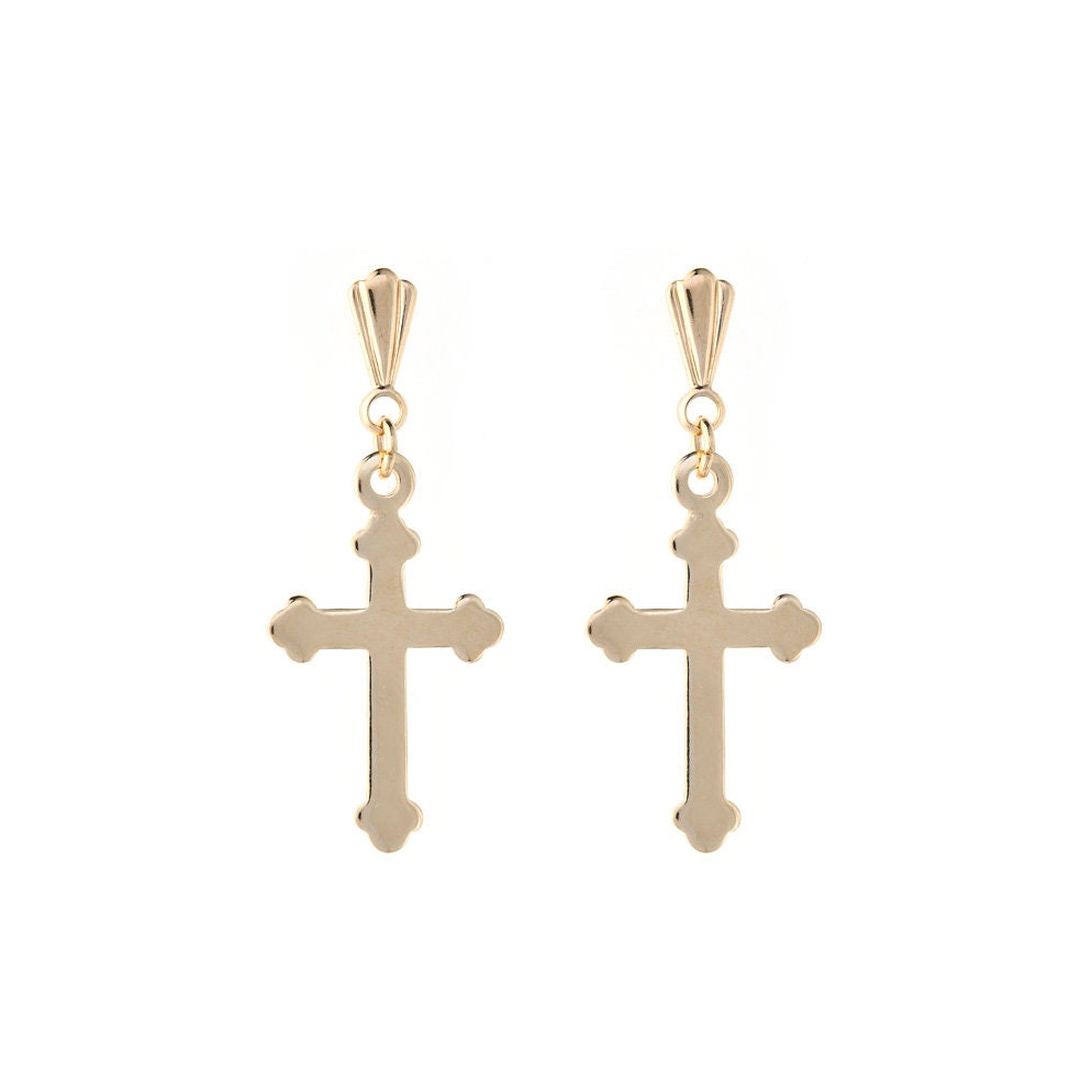 At 7.5mm (W) x 23mm (H), the proportions create noticeable length while maintaining a controlled width. The vertical drop gives the gold trefoil cross drop earrings presence, yet the scale keeps them wearable across everyday styling and more formal settings. Consequently, the yellow gold clover cross earrings sit neatly and consistently when worn.