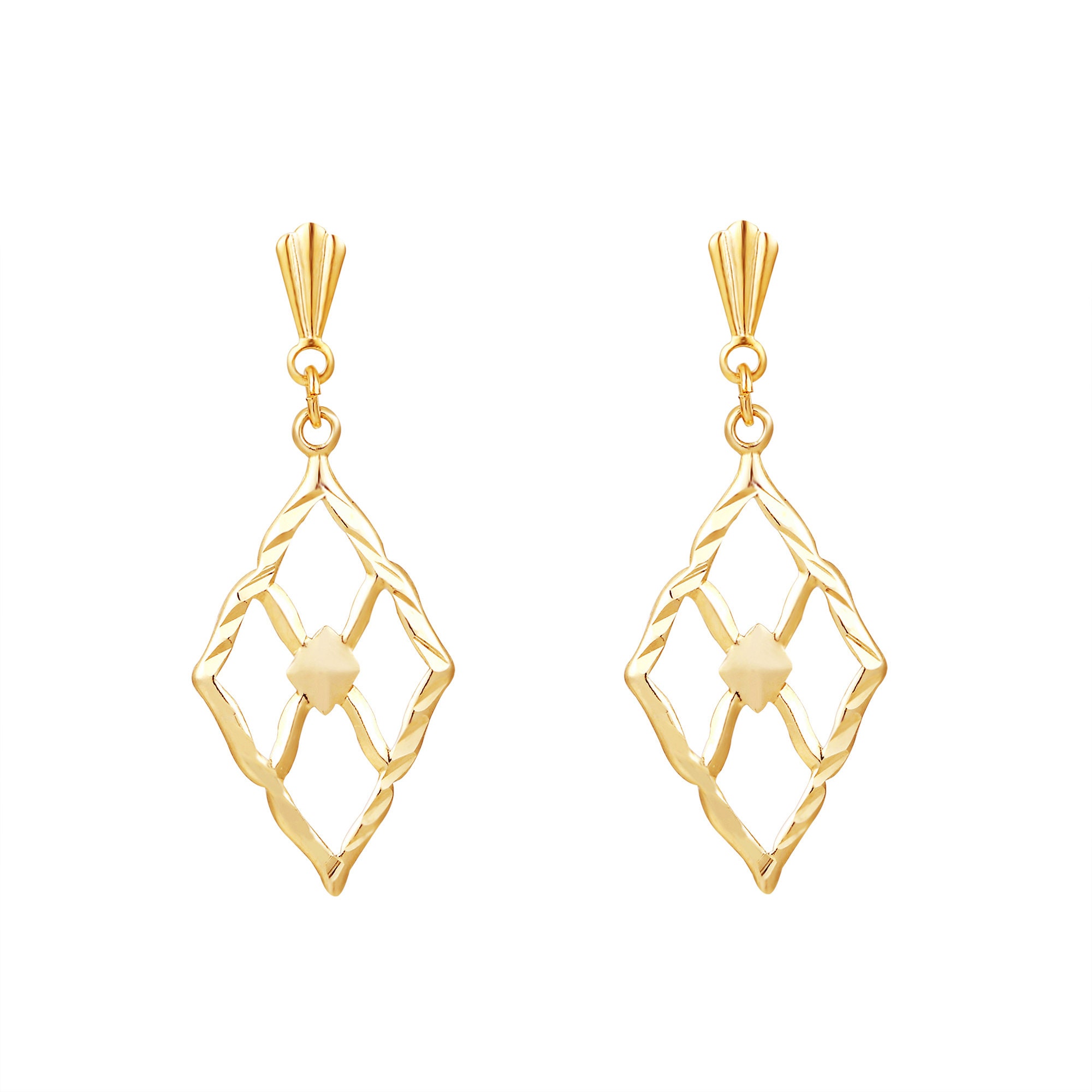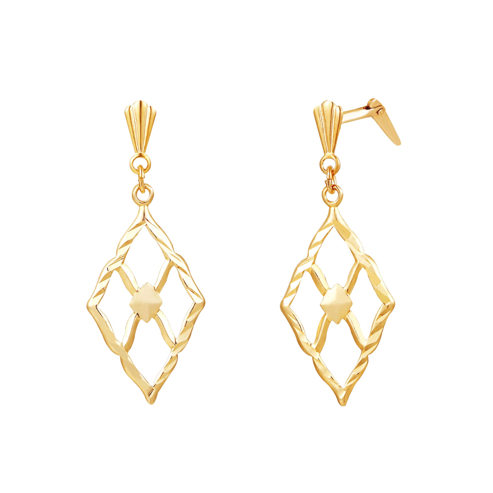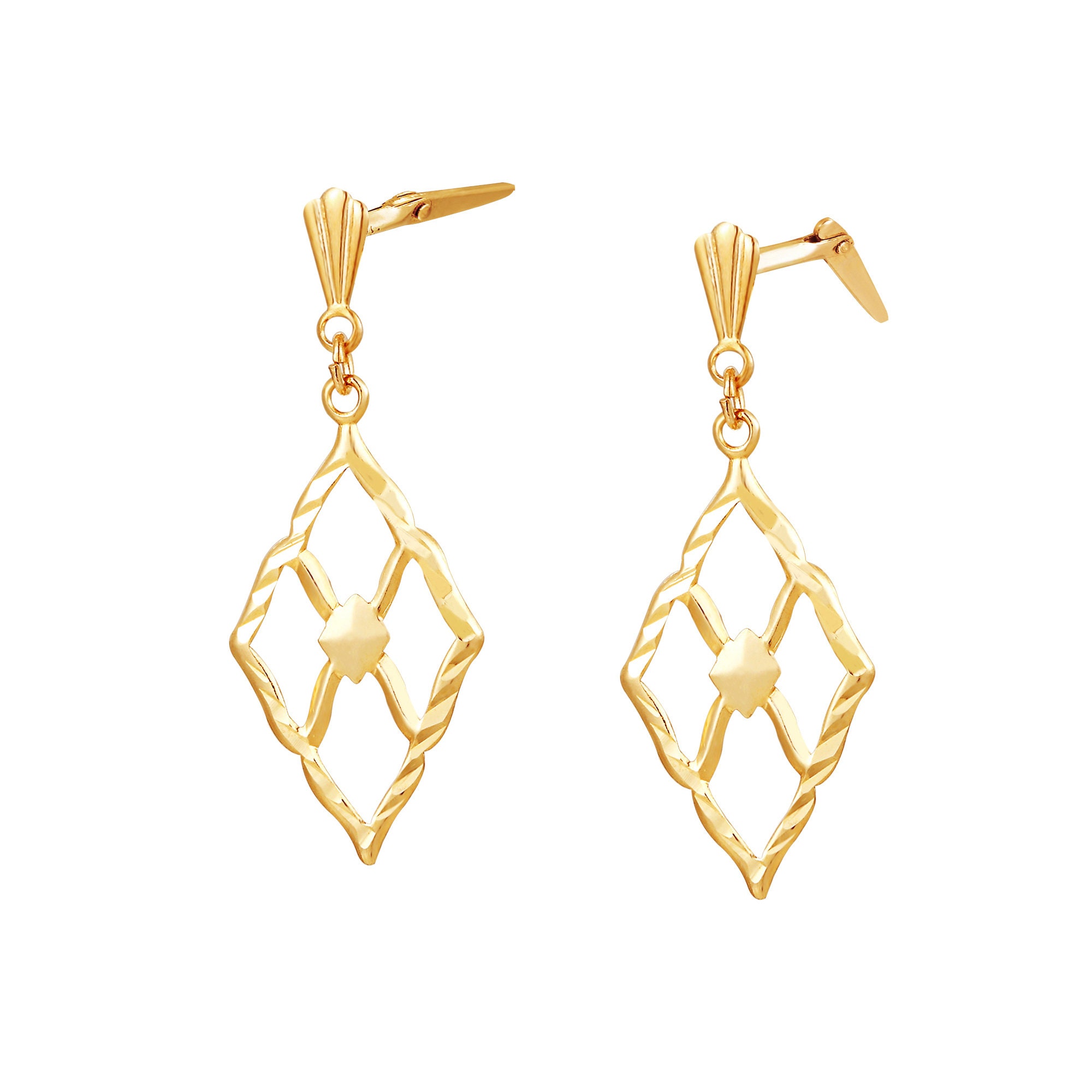 The combination of smooth inner lines and angled outer edges produces controlled light reflection rather than high shine. This balance allows the yellow gold marquise drop earrings to stand out through shape rather than surface embellishment.