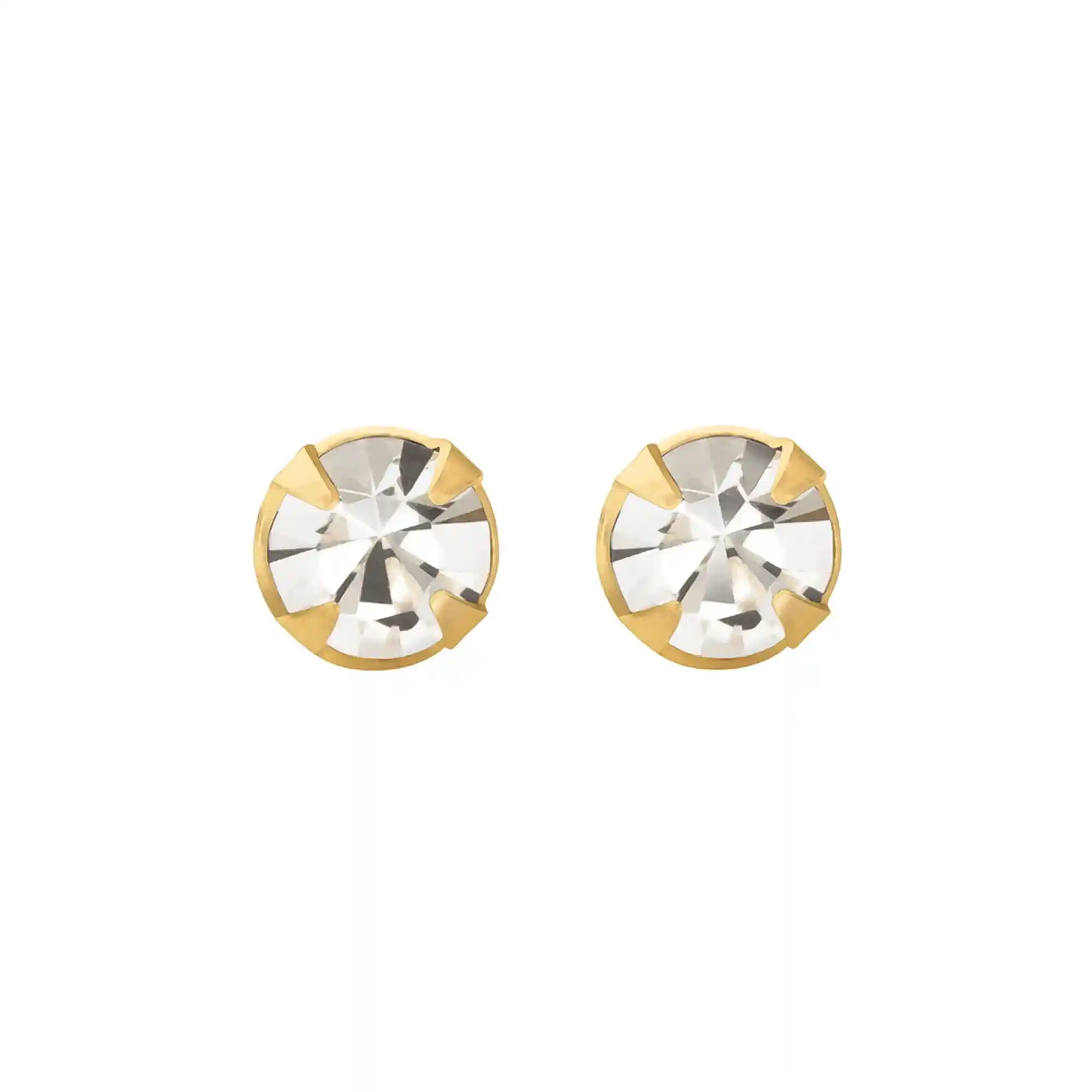 9ct Yellow Gold Andralok White Crystal Round Stud Earrings