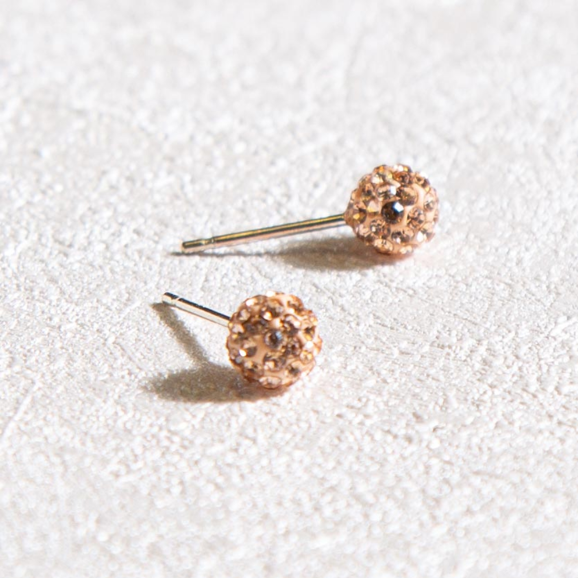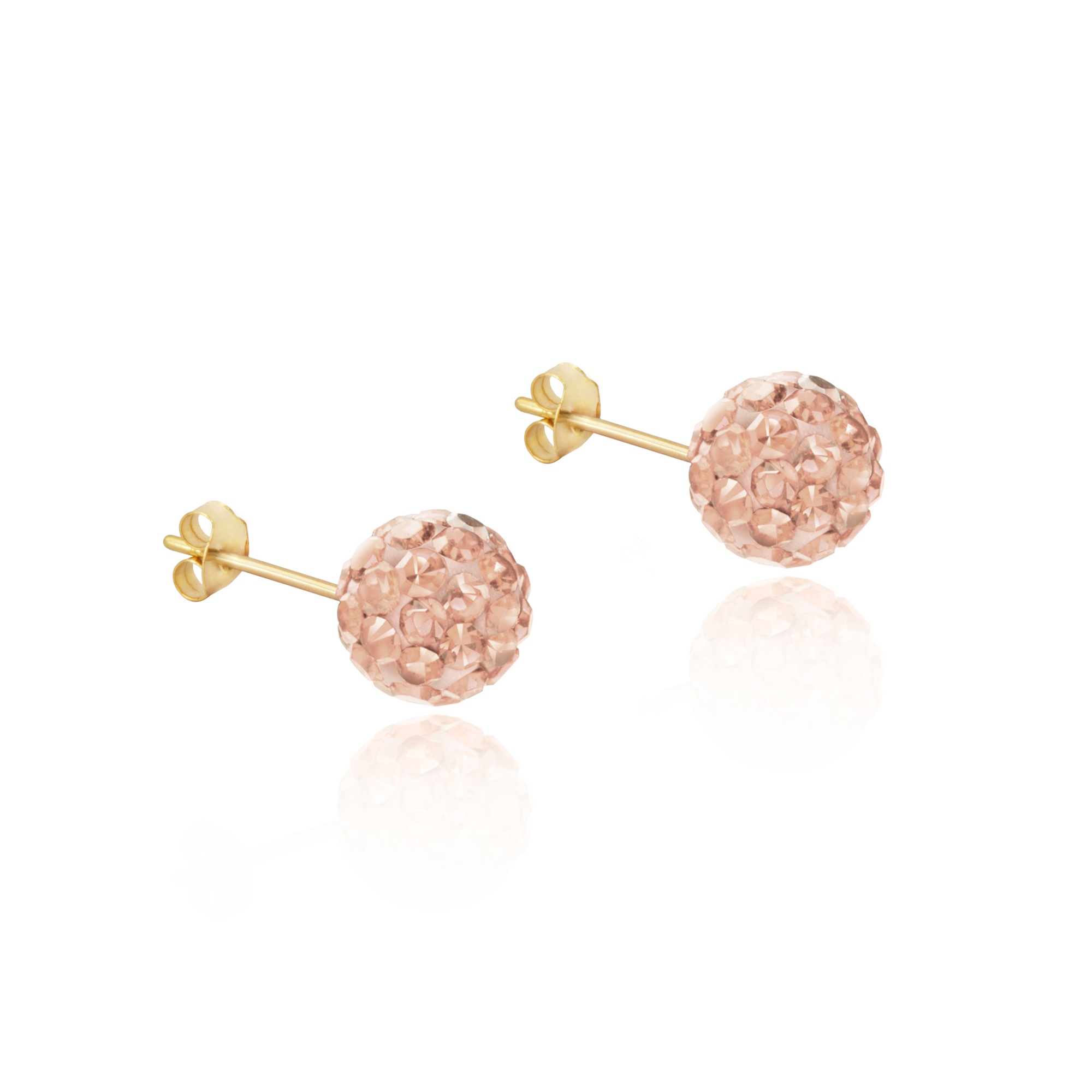 9ct Yellow Gold Champagne Crystal Glitterball Studs