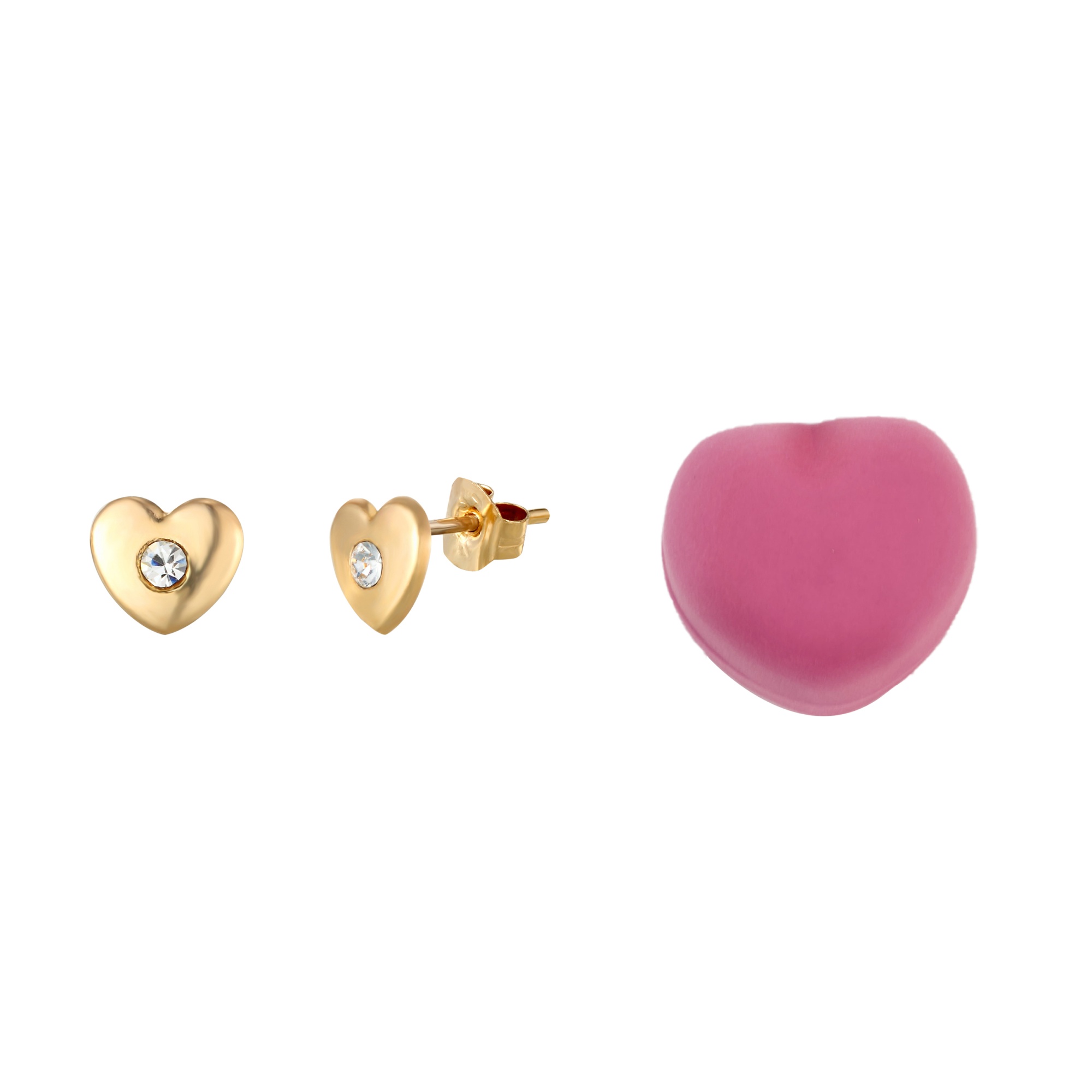 This delicate pair of heart stud earrings is manufactured and hand-finished in the UK from 9ct yellow gold and they fasten behind the ear with butterflies. With a round white crystal stone set in the centre of the heart, these pretty earrings sparkle and look stunning! The earrings are presented in a gorgeous novelty box and would make the ideal gift for someone special.
