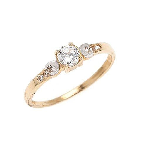 • 9ct yellow gold Cubic Zirconia CZ Solitaire Ring and CZ Shoulders