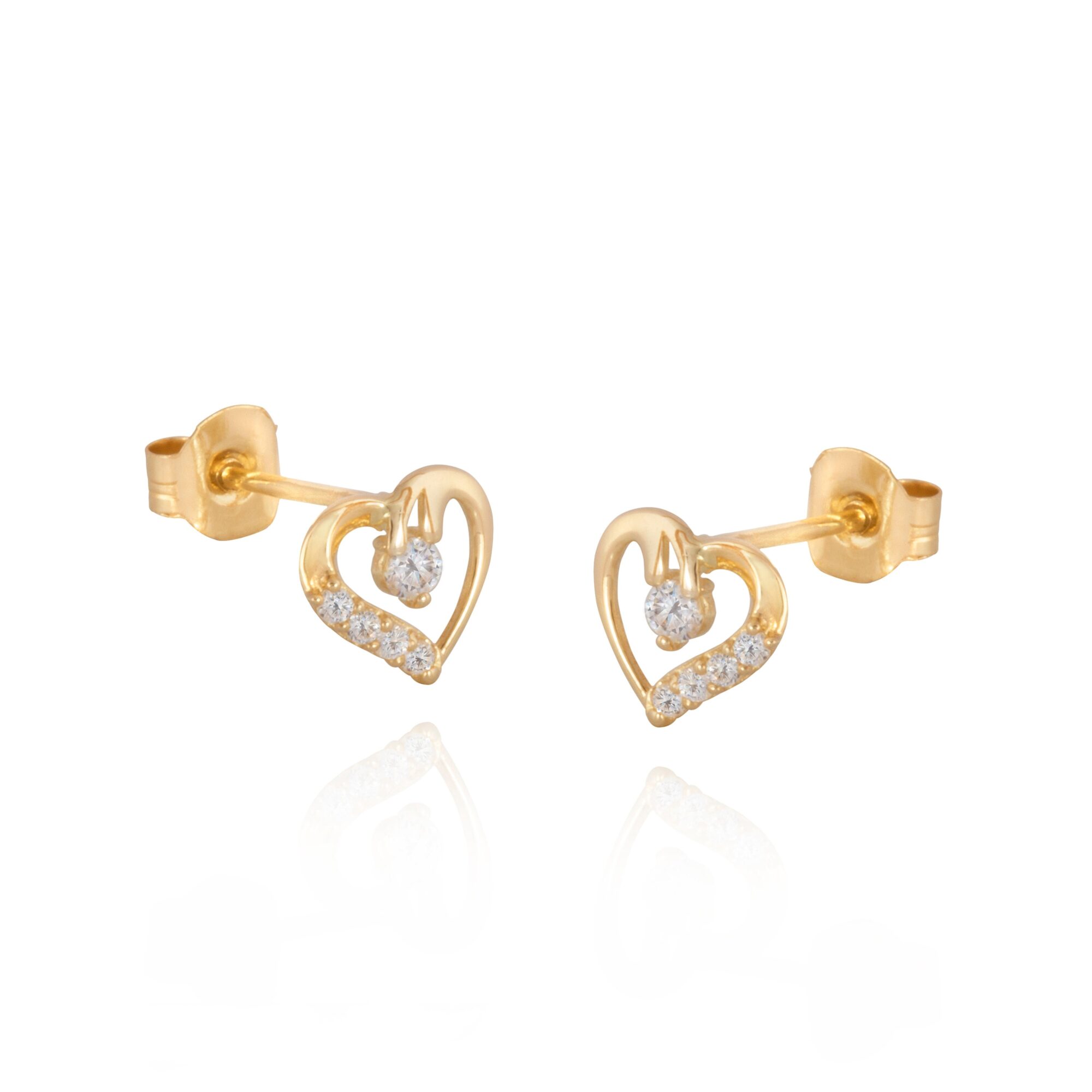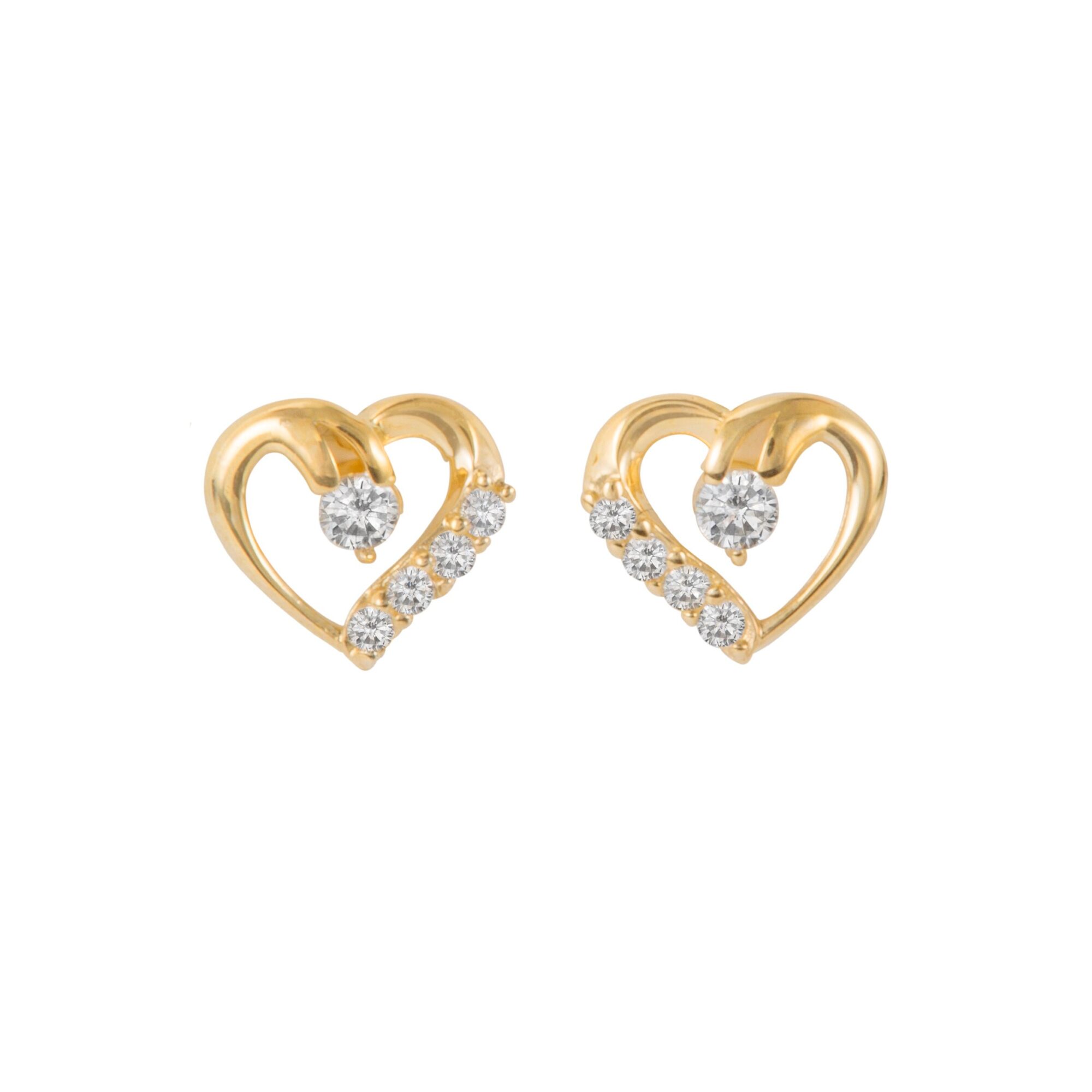 These openwork heart-shaped earrings are made from 9ct yellow gold and are set with a central CZ stone together with a row of four CZ stones on one side. They fix to the ear with a 9ct yellow gold butterfly and are an ideal addition to any jewellery box for every-day wear. The earrings are presented in a pretty gift box.