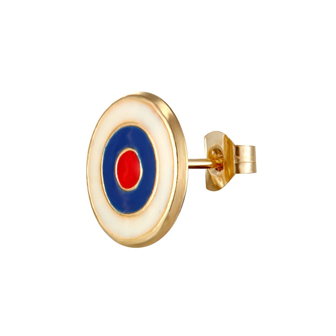 9ct Yellow Gold enamel lambretta bullseye Gents single stud earring
