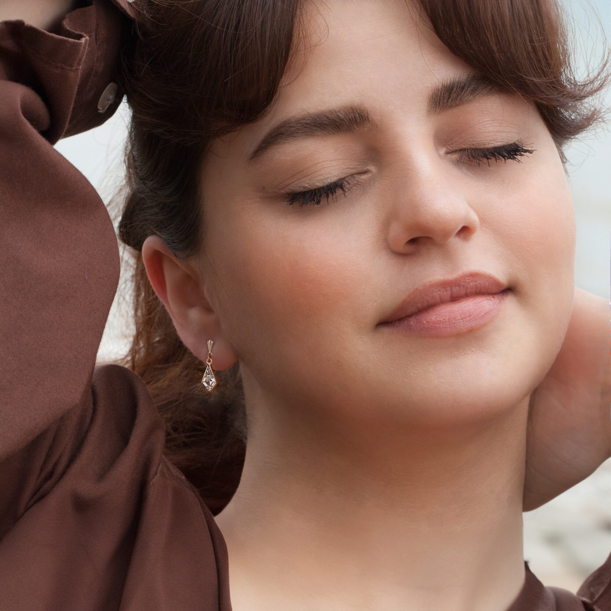 • Kite shaped cz drop earrings