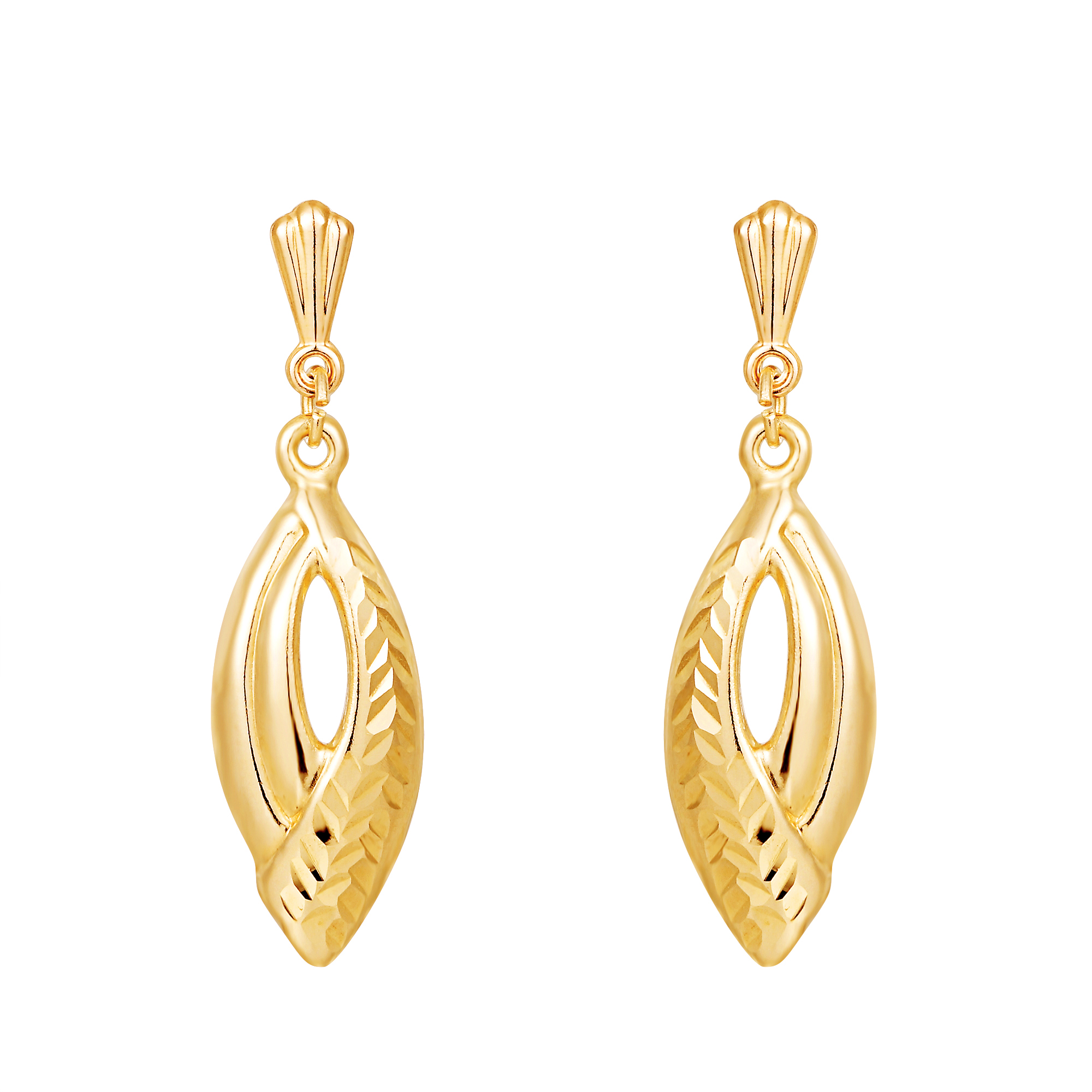 • 9ct Yellow Gold pierced oval diamond cut drop earrings