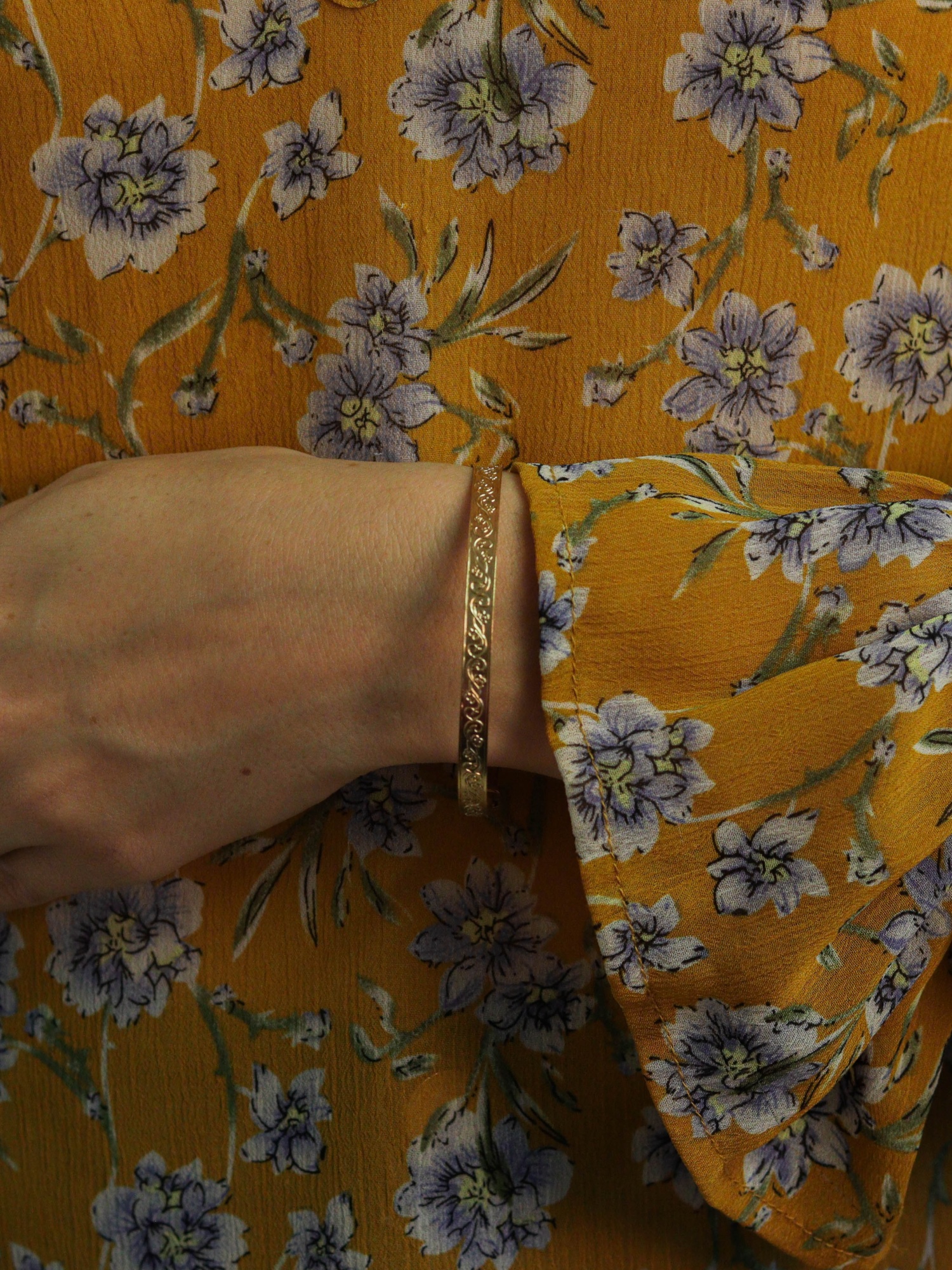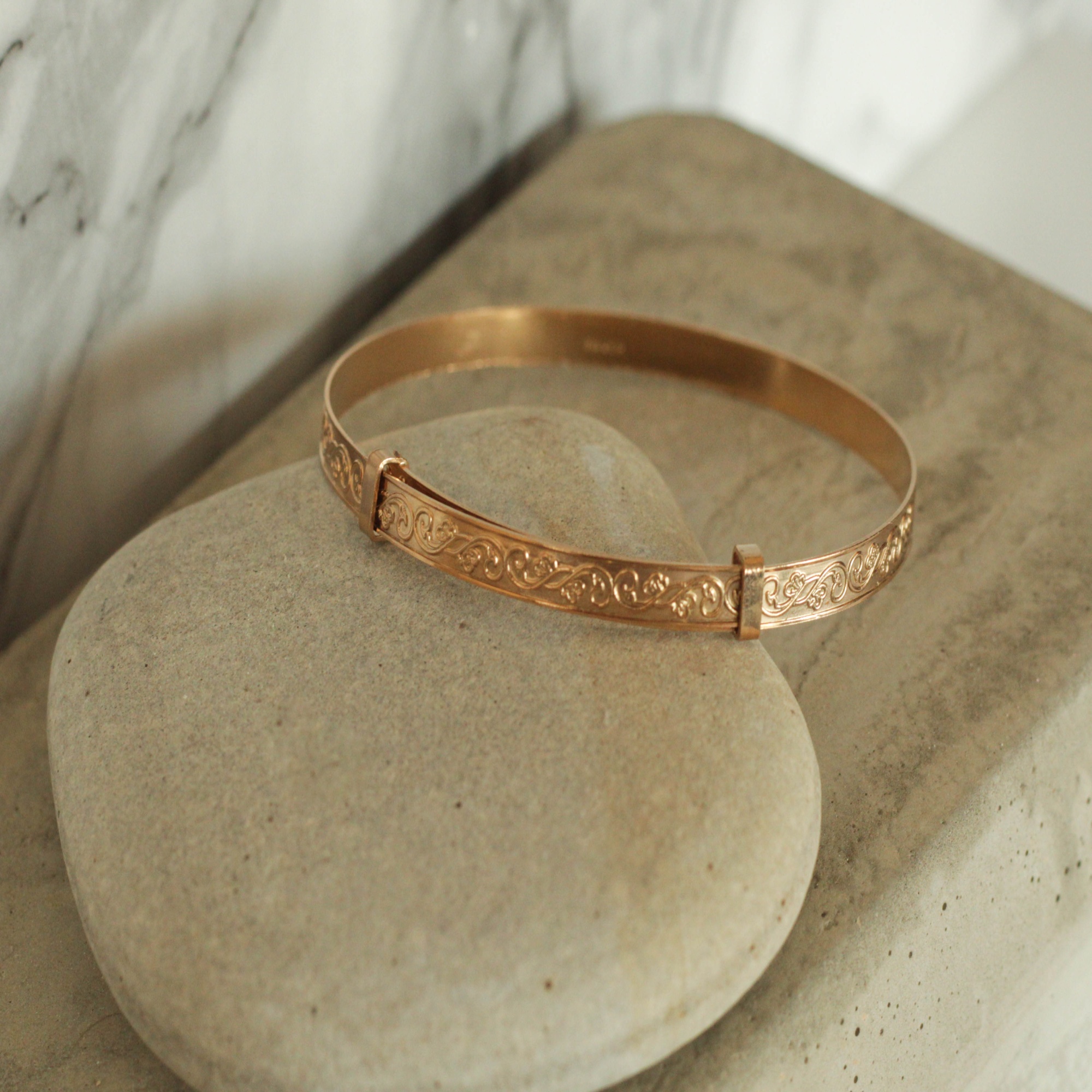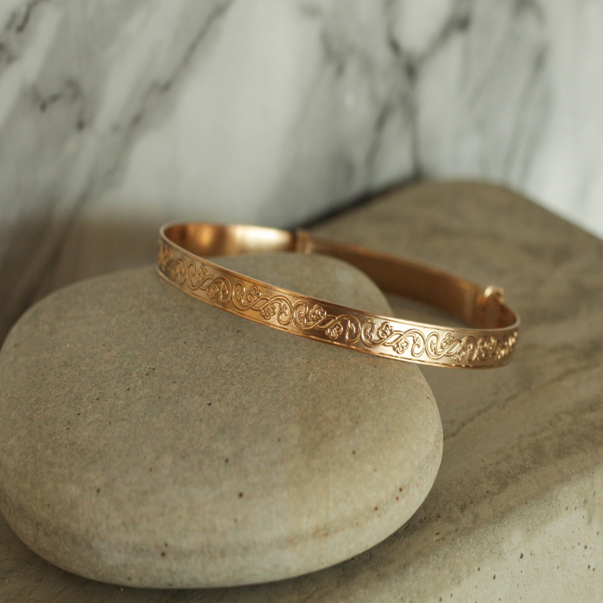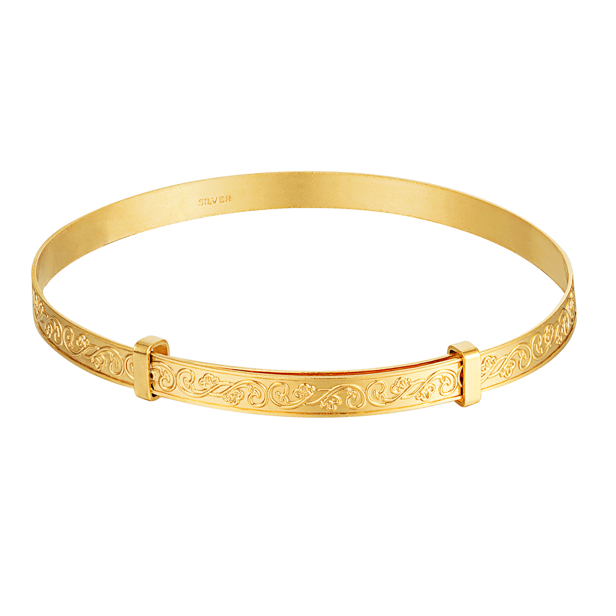 9ct gold plated sterling silver romantic swirl bangle.